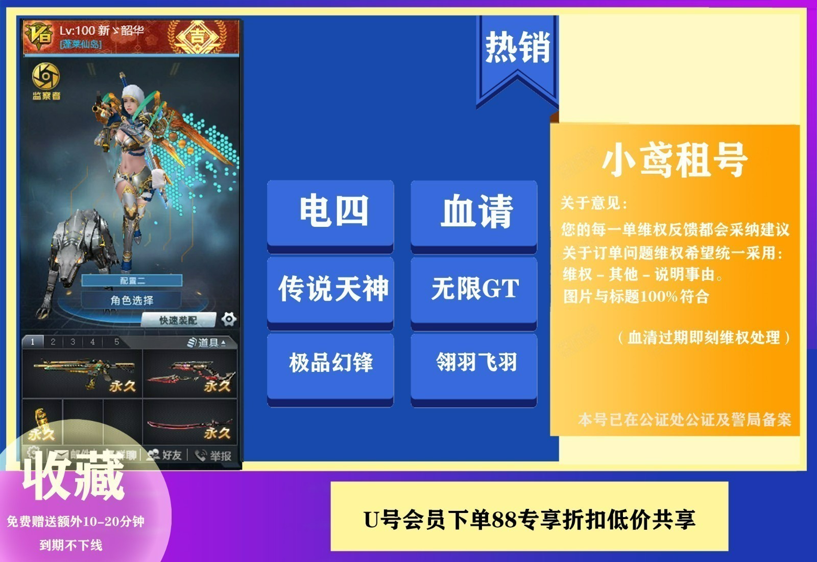 🎀【小鸢租号】🎀血清v8旅人主宰4传说天神纵横不灭飞梭!裂隙跳跳锤弧光连城!无限GT幻锋满配!