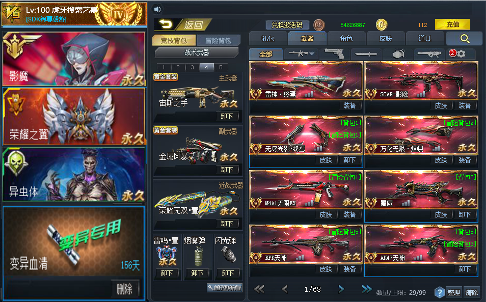 配件武器:【双翎羽1个满配1个14配】【满配原石之怒】【满配含光承影】【满配腐化】【满配幻锋】【满配虚空长矛 】【满配镭射】【123配虚空连弩】