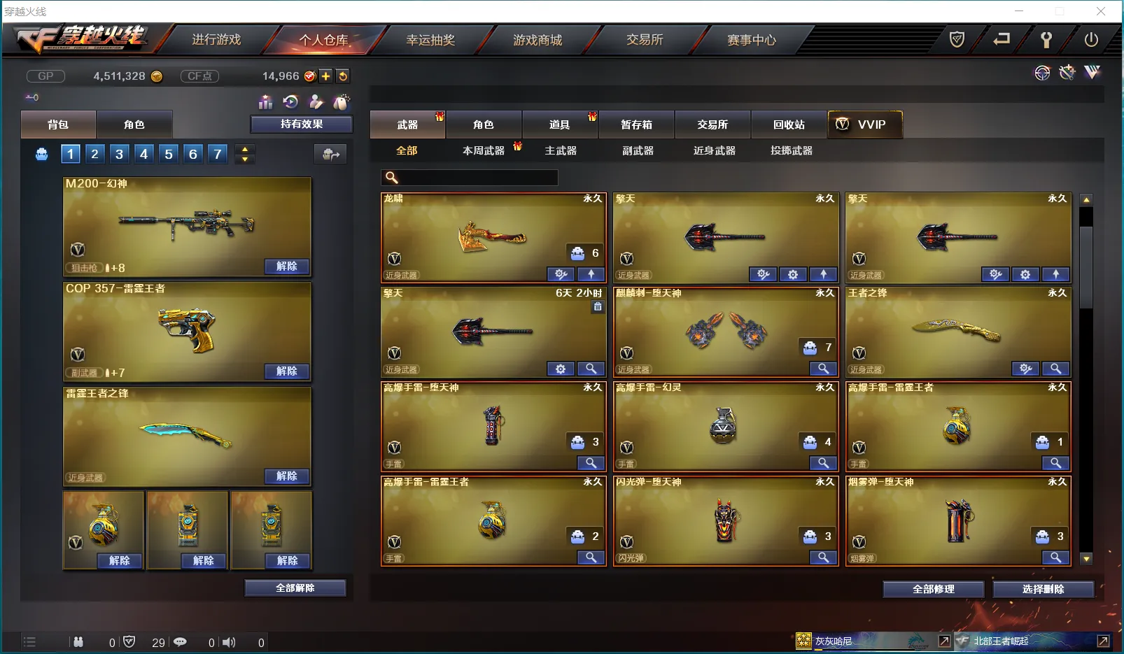 【投 掷】:雷霆王者套丶堕天神套丶高爆手雷雷蛇、凤凰之息、红色烟雾弹