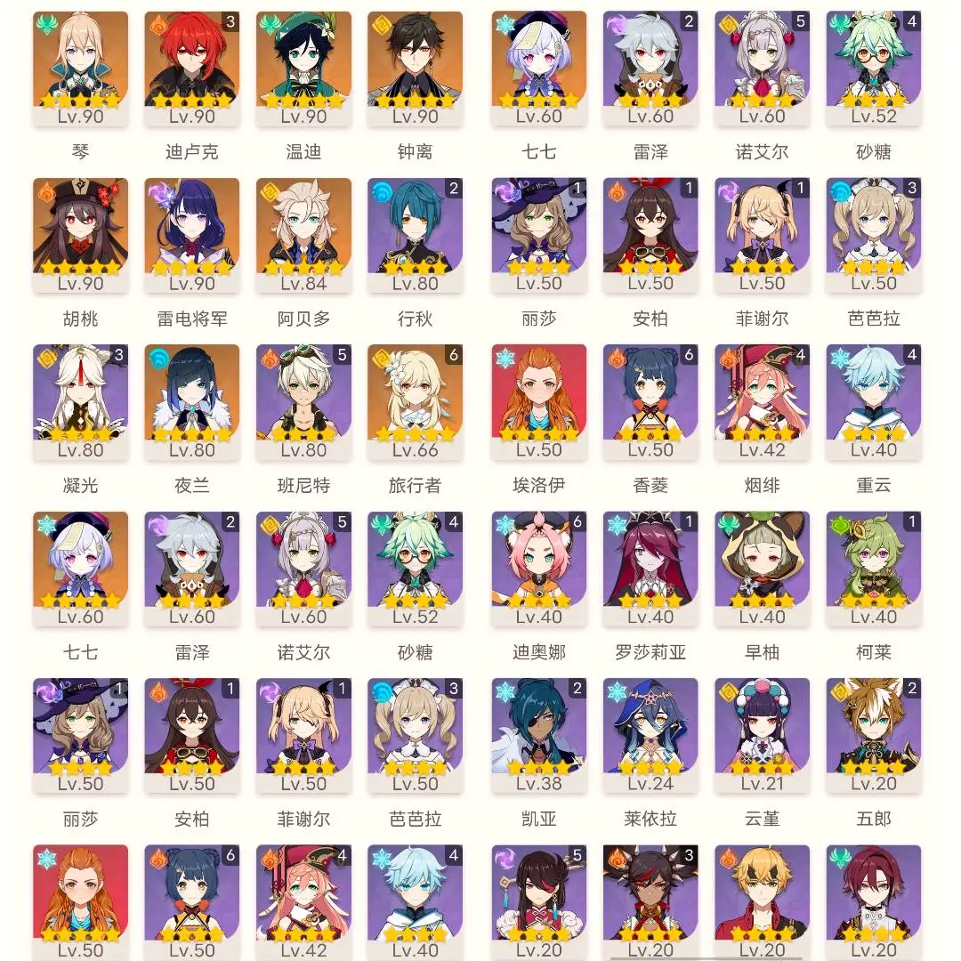 【全平台】 14黄 90胡桃90钟离90雷神90温迪三命90老爷90琴 阿贝多夜兰 号毁过