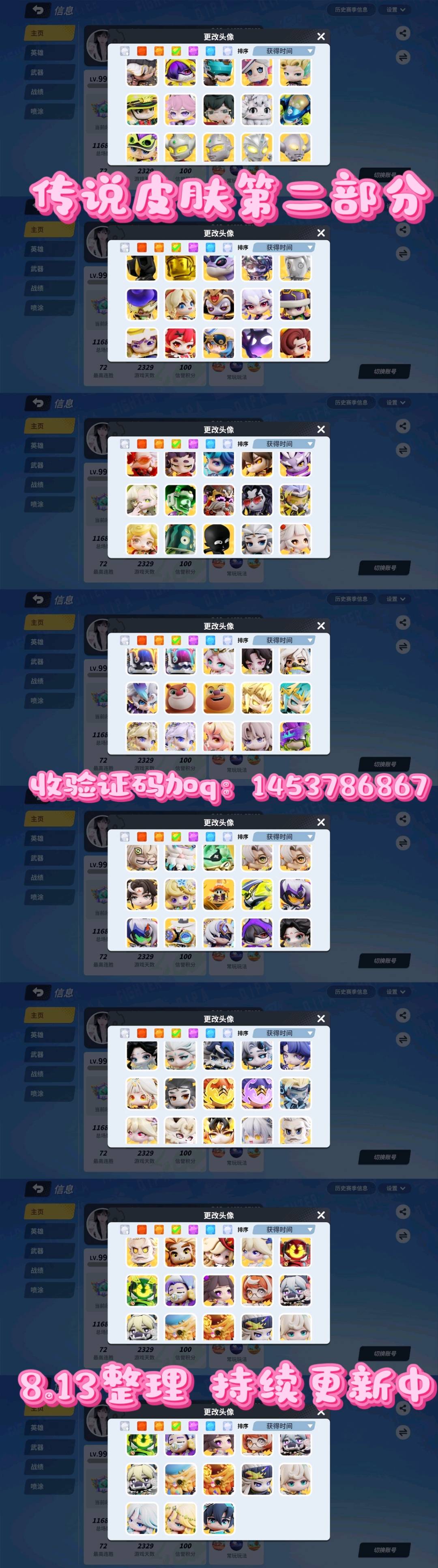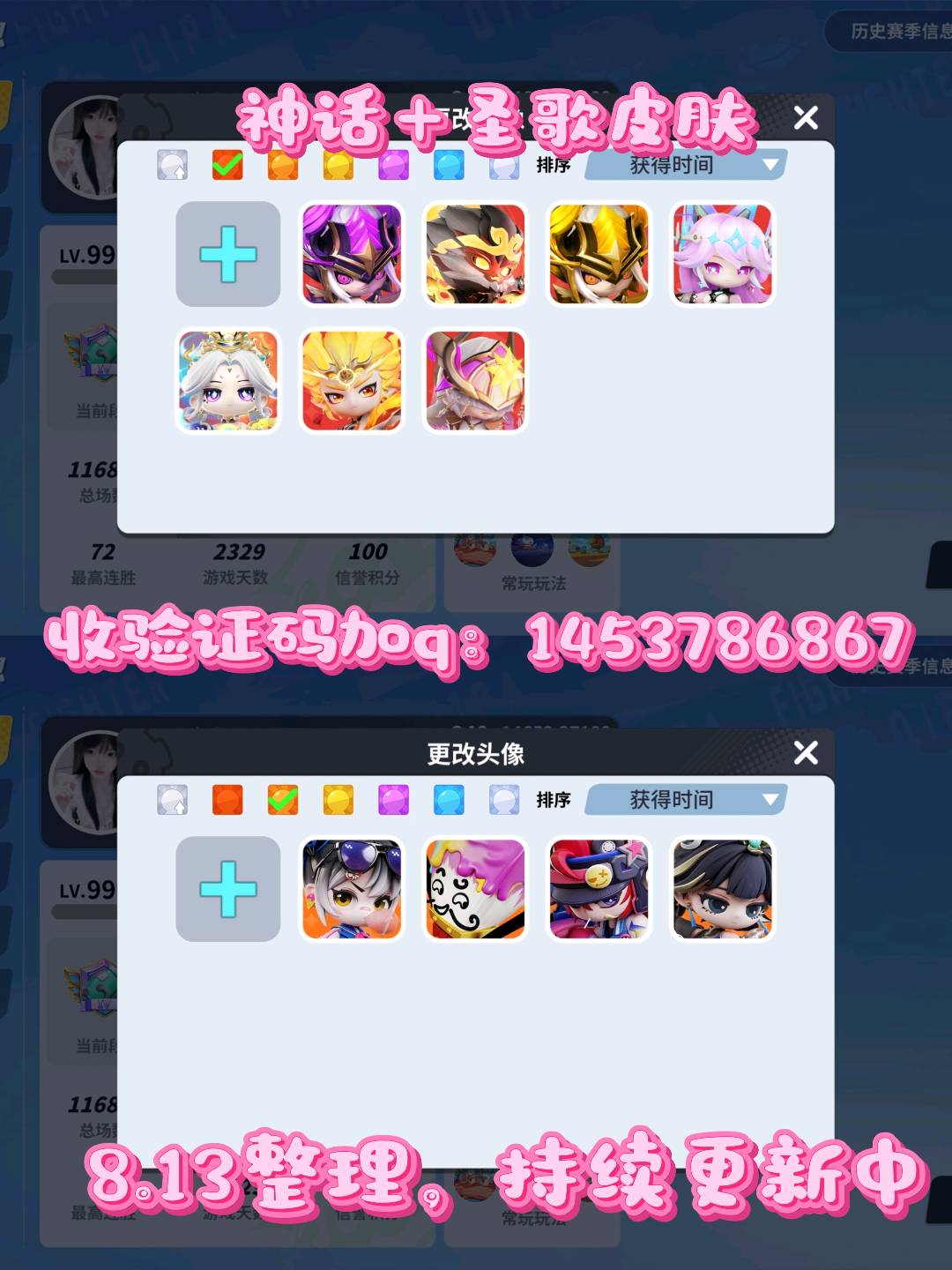 叶尼塞新神话已抽到,安卡新神话已抽到,周年皮,兰亭序,武器皮,羲和,望舒,维序者等新皮已买,黑市清空。9999级账号,所有角色毕业,62橙配,收集度95%,1000+紫配,收集度99%,546英雄皮肤,包括203金256紫,120武器皮,包括65金53紫,魔毯,莲花,外卖车等皮肤,恐龙蛋,表情玩具齐全。