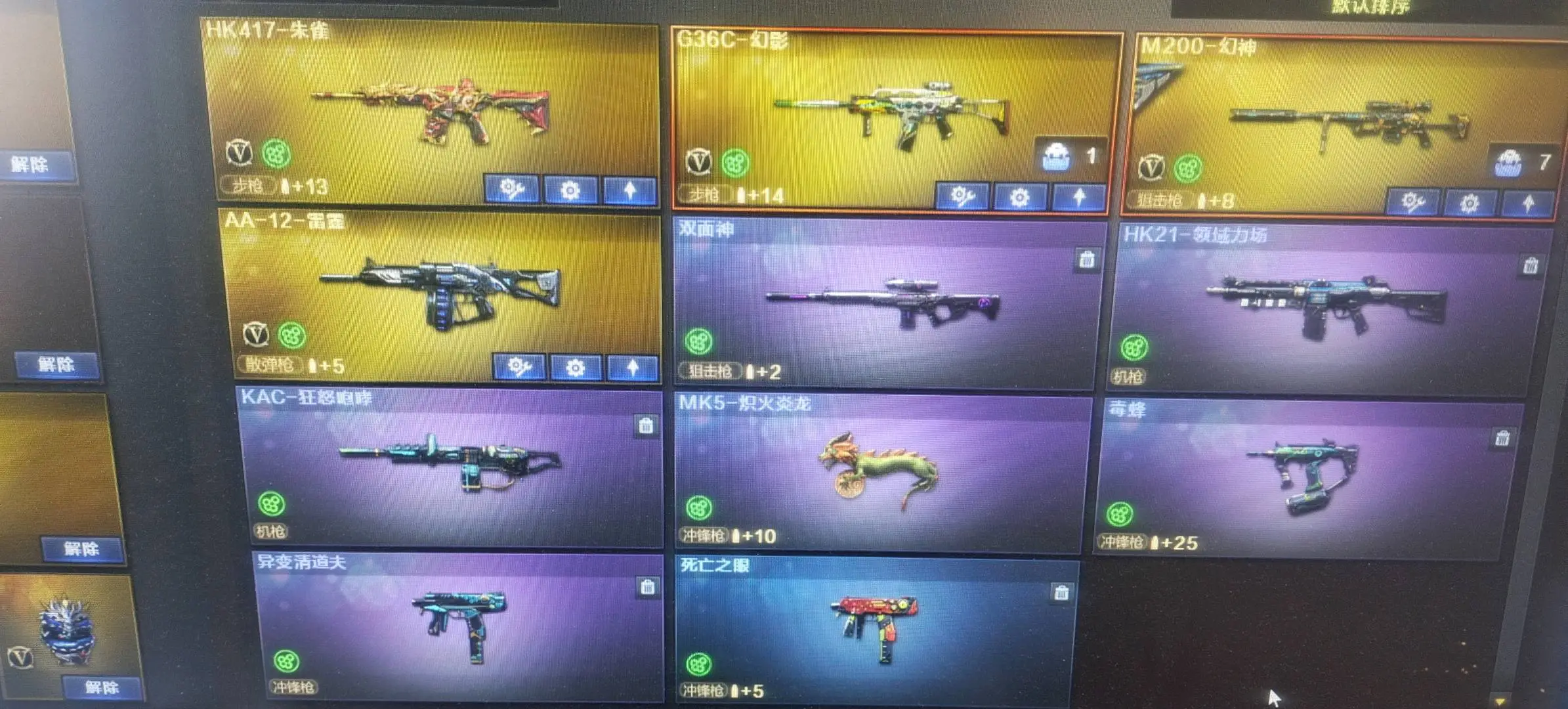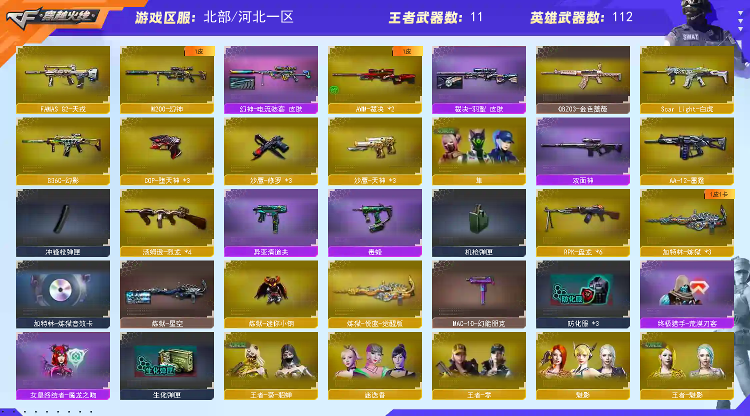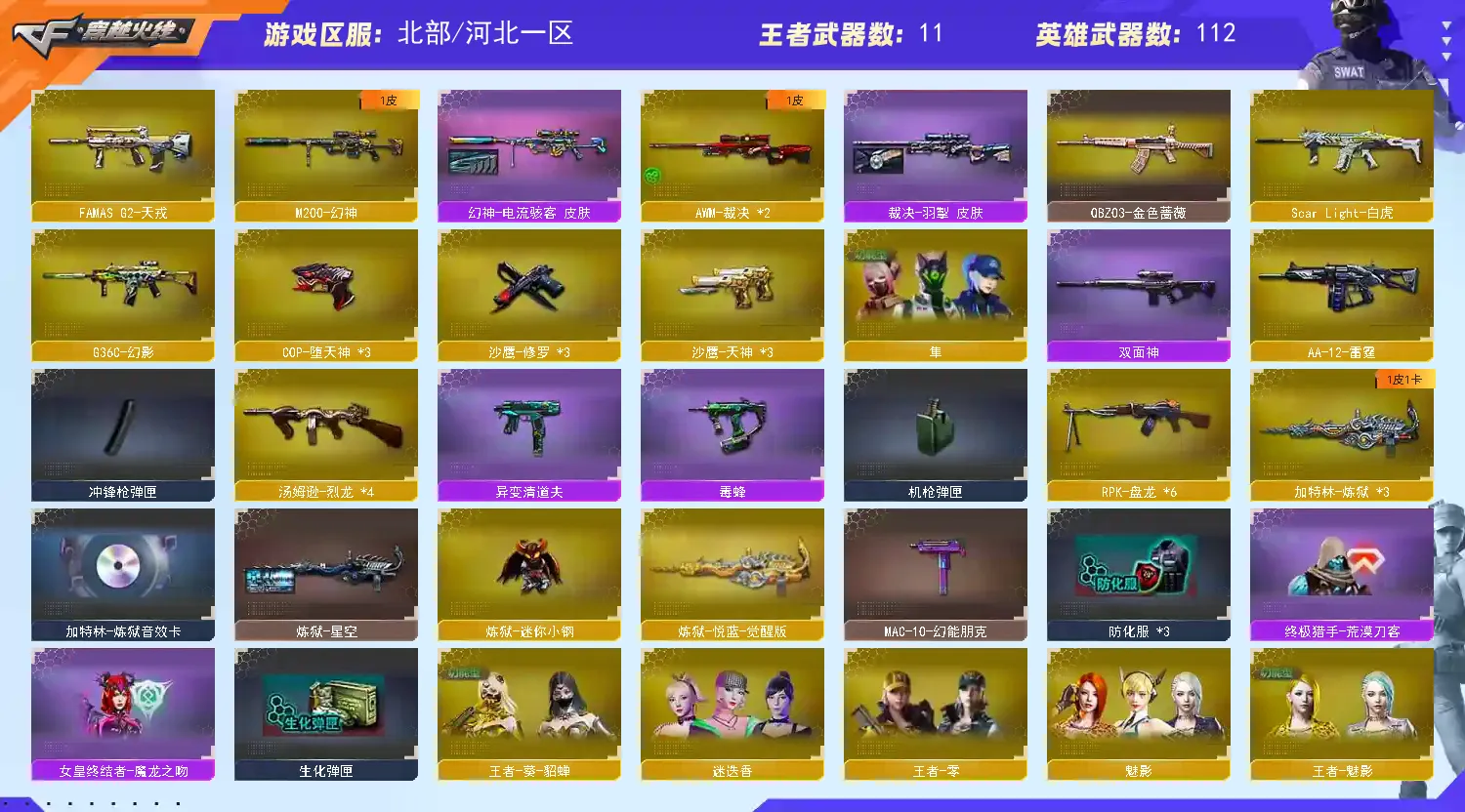 【允许排位】双全号/四防隼+幻神1皮/6盘炼狱6猎斯太尔蝴蝶/清道夫毒蜂/堕天神套/小人枪,动物枪/全弹夹