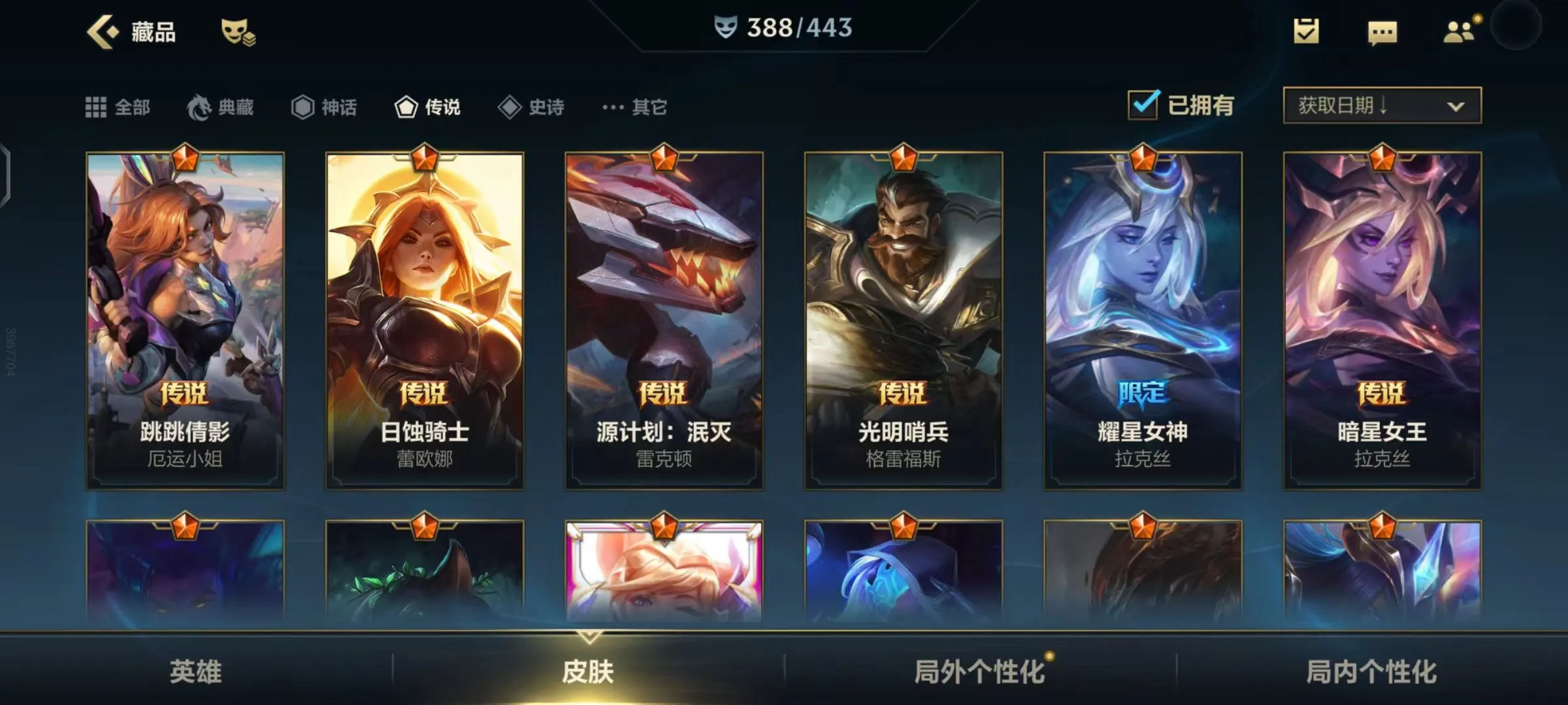 【安卓】 编号0/神豪氪金一典藏29神话630皮肤!至臻喵喵魅影➕至臻星域秘刃泰隆/至臻西部魔影全质量!