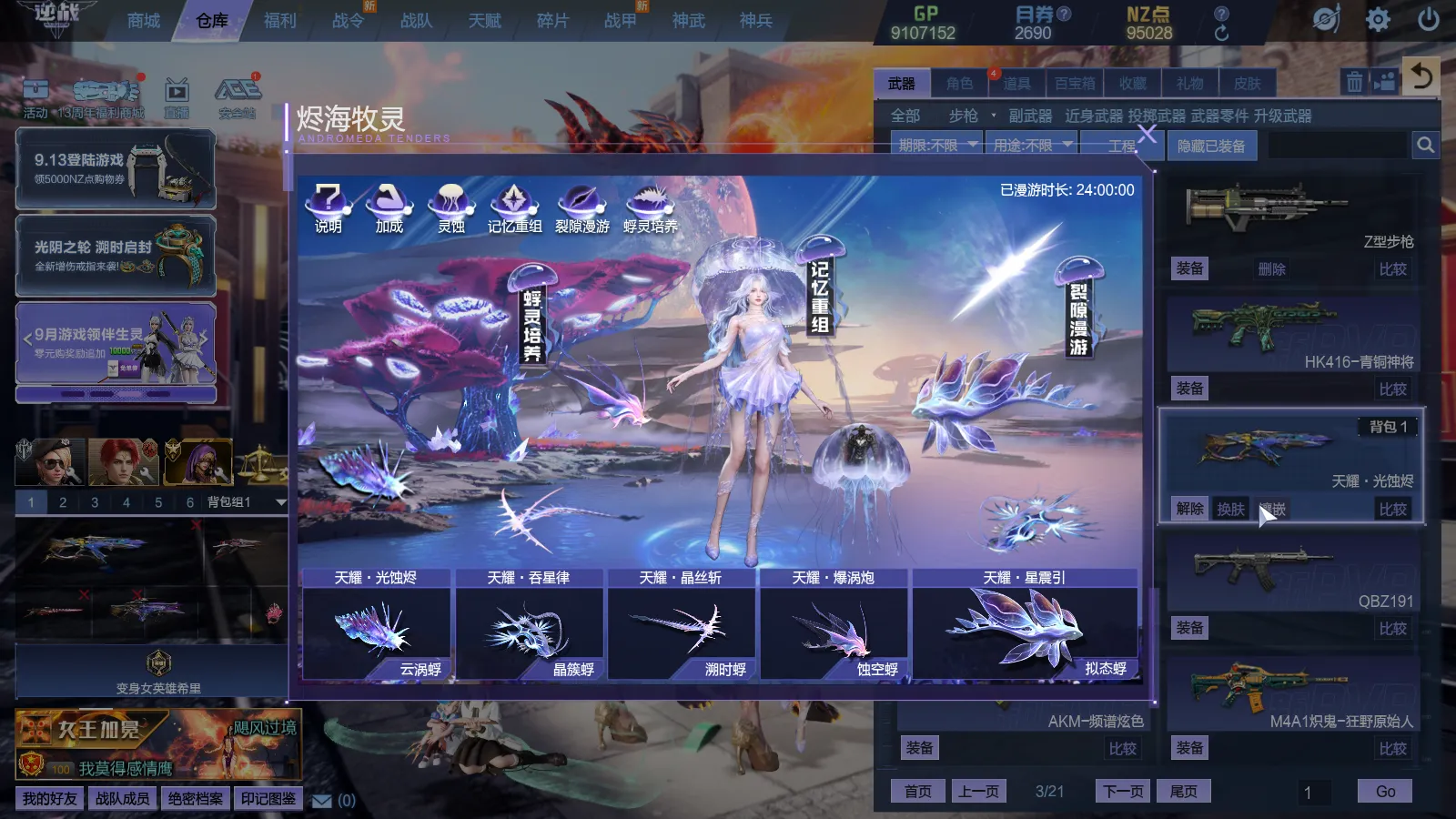主武器、G36C、去污枪、双持ACP、双持UZI-泳池派对、HK416、HKG11、M1014、M107-冰雪庆典、圣光裁决-狩魔、M107-虹能超导、长风狙击-炽热牡丹、长风狙击-蔷薇涟漪、天启-湮灭之影、闪电风暴-电光、天帝-剑破鸿蒙、闪电风暴、陨星-引力深渊、陨星-星门之隙、陨星-猎户座悲吟、陨星-银河之骸、天极-永夜之主、陨星-阿斯加德怒火、天极-转乾坤、M4-小小魔女、M4-流火悍将、飓风之龙、56式、巴雷特-鹊桥仙、M4A1-S、巴雷特M95-射手座、88式机枪-创世纪、幻域-超寰圣主、M4A1-春神句芒、88式(纪念版)、心灵战警-壮志凌云、95式-灵魂烈焰、95式-玄武、M4A1-青铜印记、95式-苍碧玄武、心灵战警、M4A1-鹊踏枝、95式步枪-阡陌暖春、95式步枪、M4A1、心灵特工-蛇灵之眼、心灵特工-锦衣月白、心灵特工、黑龙霰弹枪、M4M203、战地AK74U、M60、M60(纪念版)、战地KACSAW、MG3、MKV200掌上枪-蔚蓝、AK-猎食者、AK-白虎、MP7、掌上枪-混沌缇娜、MSBS-毕方、MSBS、MSR-刑天、AK47-B、MSR-武神、AK47-公测狂欢、AK47-山水画意、AK47-庚金白虎、NEGEV、极夜星魂-凛冽冰蓝、AK47-逐月、AK47-阡陌暖春、PKM、AK47、极寒冰神-复兴、极寒冰神、枫叶95式、AK5、RPK、SA58、SCAR-冰雪庆典、气锤、SCAR-凤凰琥珀、泰坦双星、SCAR-天王、浴火战神、SCAR-星尘、SCAR-智斗纹章、SCAR-朱雀、深渊之瞳-流光、SCAR-棘龙、湮灭之影-流光、火神暴君、Scar-赛博霓虹、火神炎帝、灭烬之嗣、AN94-蛟龙游、炼狱之怒-流光、AN94、烈焰战神、Scar朱雀-原神之怒、玄武-锦衣月白、AR15-纳福、AR15、AR15海王-寒宫萌兔、SG551、SPAS12-星耀银河、SPAS12、神凰-昭灵威仪、神枪手-G36C、TAR21、TMP、ARX160、TPG1、离震-雷鸣闪击、AUG、Ultimax100、AUGA3、UMP45-炽热牡丹、XM8、AWM-亘古永恒、Z型步枪、离震双法战术终端、AWM-地狱火、米尼米机枪、米尼米(纪念版)、伯耐利新星、纪元之光、纪元之辰-冷白、FAL、刺刀AK47-十周年、FAMAS、FG42、G36C-学院机械、原子力量-战意星河