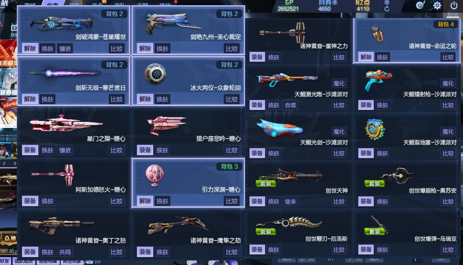 主武器、HK416、血魂M4、哮天犬-AK、哮天犬-狙月、诸神黄昏-末世重生、L85、M107-冰雪庆典、钻石AK47、M107-混沌、M107-电玩、镶金红玉-AK47、M107混沌-数字矩阵、闪电风暴-电光、闪电风暴-雷鸣、天帝-剑破鸿蒙、闪电风暴、陨星-引力深渊、陨星-星门之隙、陨星-猎户座悲吟、陨星-银河之骸、天极-永夜之主、陨星-阿斯加德怒火、天极-转乾坤、M4-小小魔女、M4-流火悍将、天鲲激光炮、M416-炽鬼、飓风之锤、飓风之龙、鬼炎M4、M416炽鬼-金鳞化龙、50式冲锋枪、巴雷特-炎狱龙魂、81-1式、巴雷特-鹊桥仙、M4A1-冥王、幻域-超寰圣主、M4A1-绝影、M4A1-腥红、心灵守卫、M4A1-逆火3周年、鮟鱇AR15、鹰王MSR、95式-玄武、M4A1-雪域迷踪、M4A1-青铜印记、95式-苍碧玄武、心灵战警、黄金AK47、95式步枪-阡陌暖春、M4A1-黑金、M4A1-龙鳞、黄金Z型步枪、心灵特工-阡陌暖春、心灵特工、黑龙霰弹枪、战地AK74U、M95-飞电、97式-狼王、MG3-庆典版、战地KACSAW、MG3、ACE32、MKV200掌上枪-炽红、AK-猎食者、AK-白虎、掌上枪-混沌缇娜、MSR-丘比特、MSR-刑天、MSR-武神、MSR-蔷薇、AK47-公测狂欢、MSR-青龙偃月、AK47-剑齿银虎、MSR-龙皇、AK47-寻龙、MSR-龙鳞、AK47-山水画意、AK47-流火悍将、AK47-阡陌暖春、AK47军魂(四周年版)、RPK-S、枫叶95式、SCAR-丈八蛇矛、气锤、AK白虎-原神之怒、SCAR-天王、浴火战神、SCAR-庆典版、SCAR-星尘、SCAR-智斗纹章、海王M4-源代码、SCAR-朱雀、SCAR-火凤、SCAR-爱恋、火神暴君、火神炎帝、灭烬之嗣、AN94-地狱烈焰、AN94-戴拿、AN94-蛟龙游、炼狱蝎王、烈焰战神、AR15-冰雪节限定、牛气冲天-81式、AR15-圣诞节、AR15-方天画戟、电磁加农炮-宙斯、AR15-黯金、SPAS12-星耀银河、白银RPK、神凰-昭灵威仪、神枪手-G36C、T2MK5、TMP、TPG1、Ultimax100、AWM-S(四周年版)、Z型步枪、AWM-狂野原始人、AWM-盖亚、AWM-黯金、刺刀AK47-十周年、Famas-黑骑士、剑破鸿蒙-苍星耀世、加特林-狂蟒、超寰圣主-皇权帷幔、原子力量-战意星河