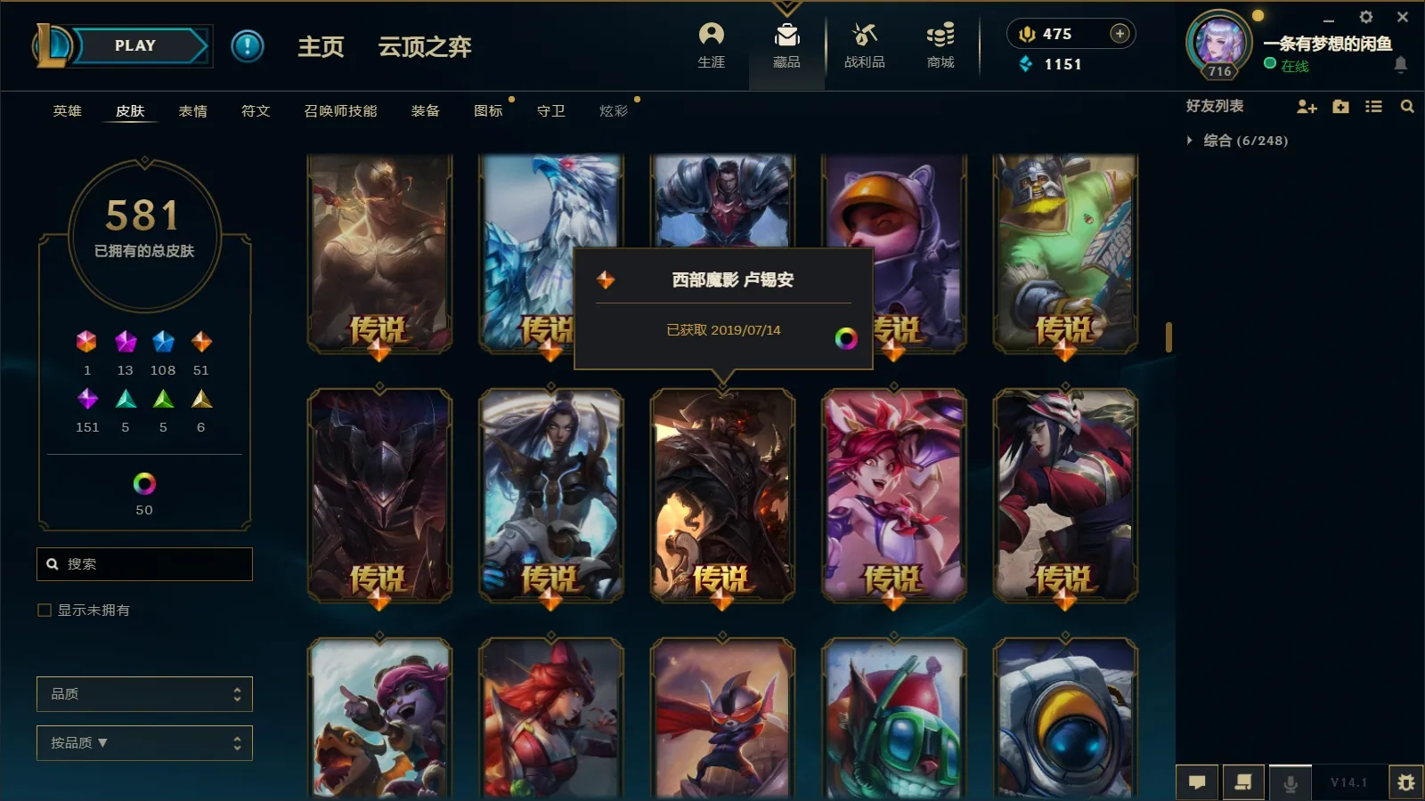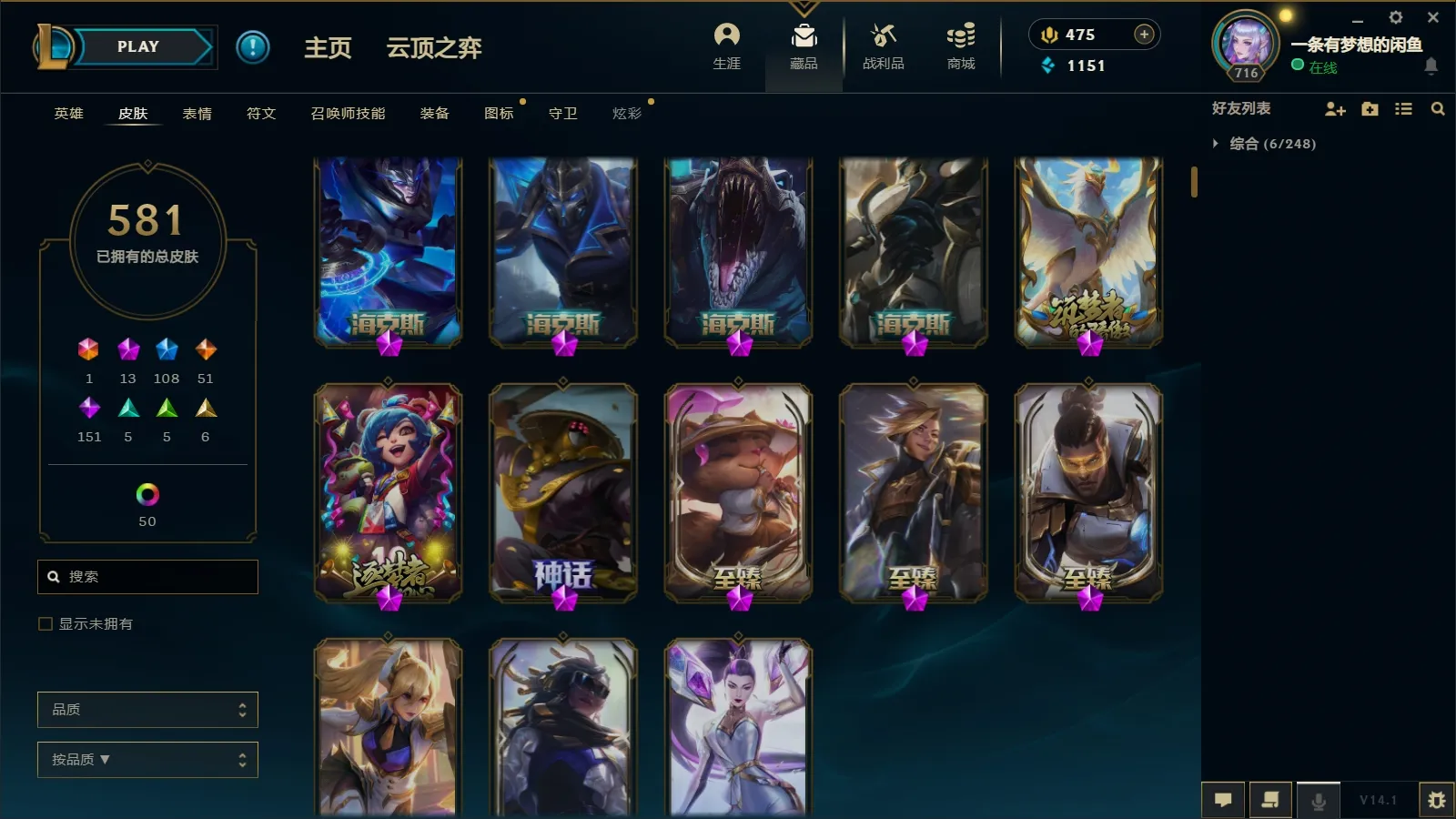 - 神话皮肤数量: 13