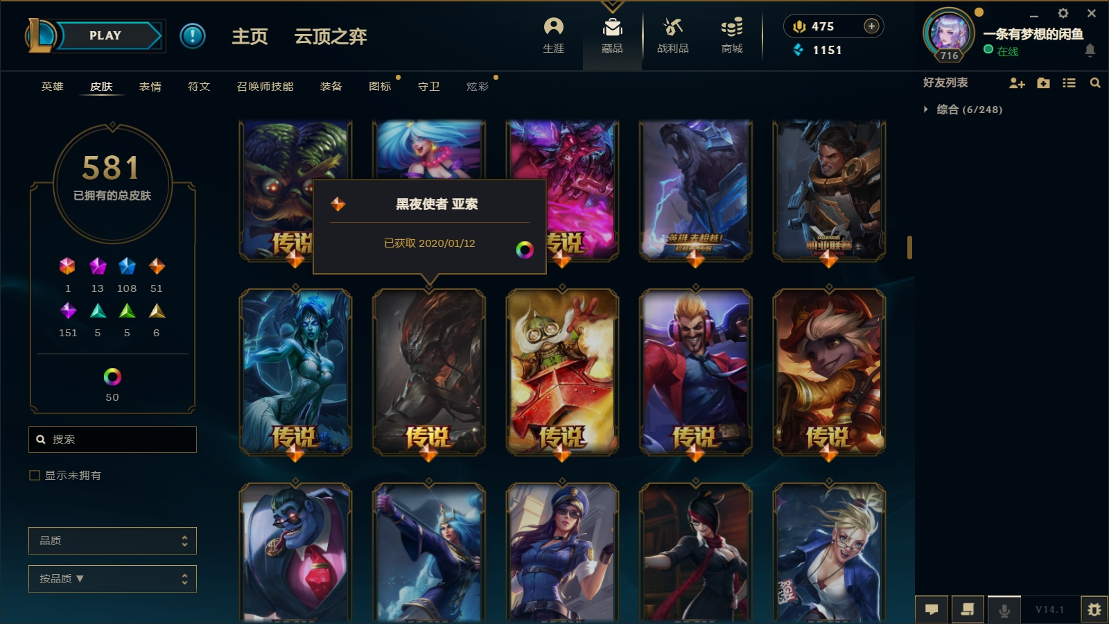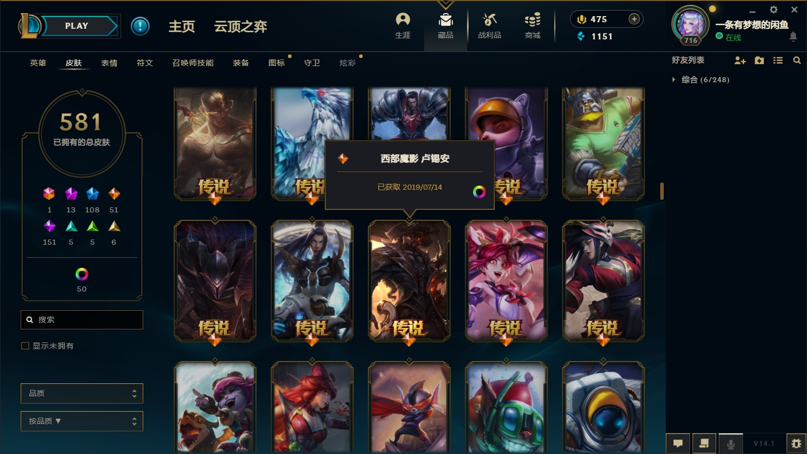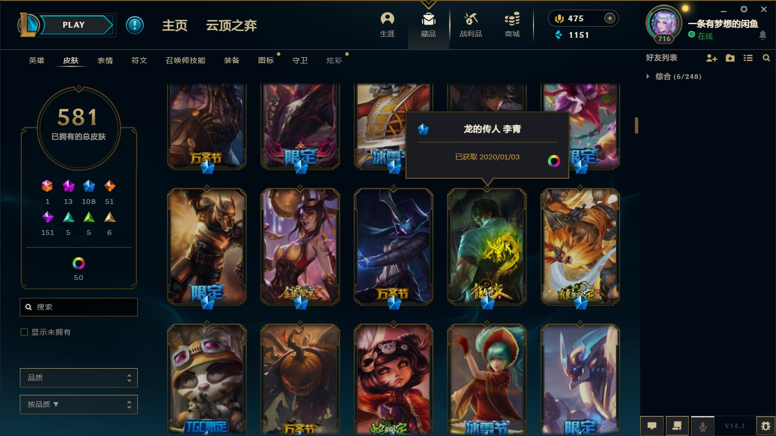 1000皮肤〓13至臻海克斯〓穿星绿龙瞎〓玉剑男刀卧虎藏龙〓勇敢的心黑夜黎明〓西部魔影奥巴马