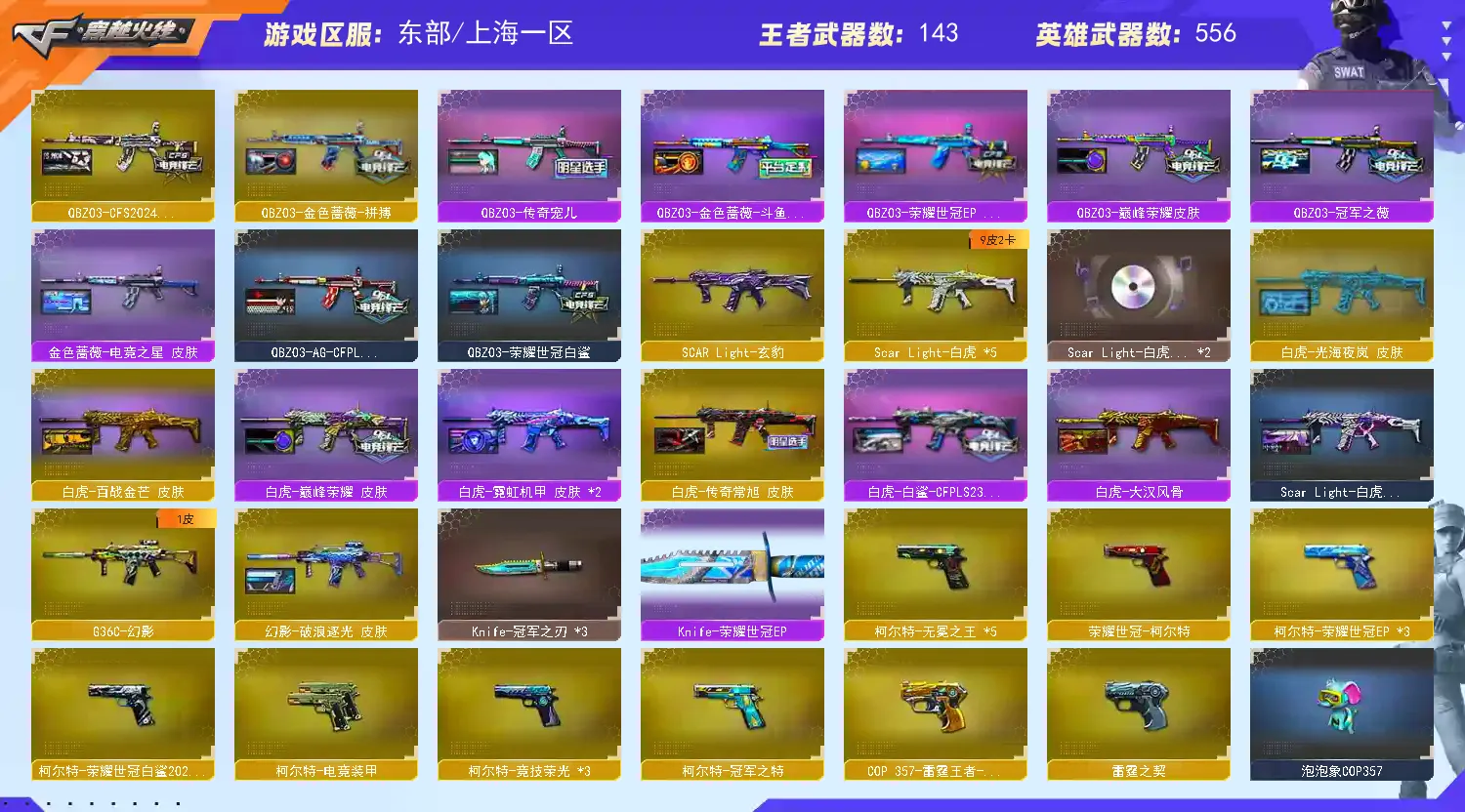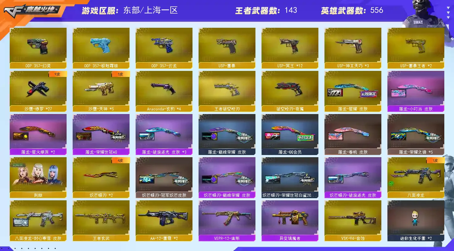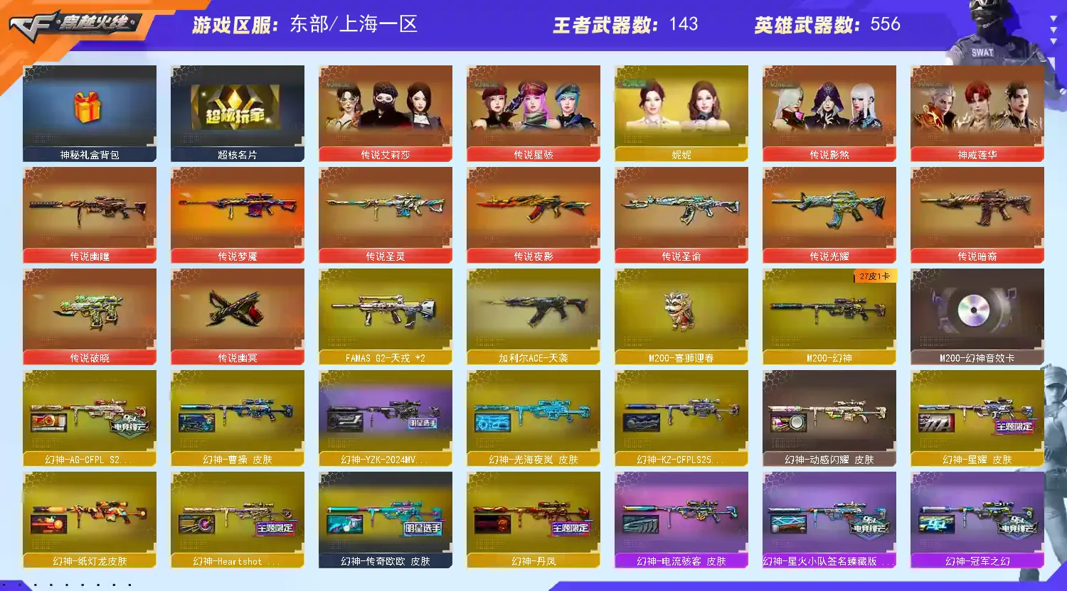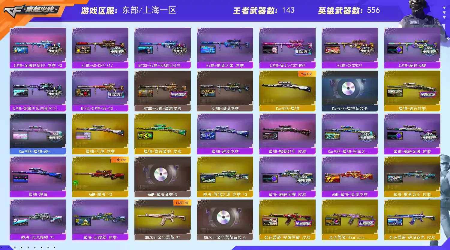【上海一区/490V/vip1/12传说】【传说艾莉莎/传说影煞/传说暗裔/传说圣灵/传说光耀/传说梦魇/传说夜影/传说幽冥/传说幽瞳】【鹰】【竞技荣光套/神工天巧套/夜魔套/武圣套/6烈龙/6盘龙/6炼狱/6修罗/6黑骑士】【M200-幻神/M200-幻神音效卡/M200-幻神-动感闪耀音效*2/幻神-星火小队签名臻藏版 皮肤/幻神-宠儿-2021MVP/M200-幻神-N9-2022MVP/幻神-巅峰荣耀/幻神-冠军之幻/幻神-曹操 皮肤/M200-幻神-荣耀世冠白鲨/幻神-周瑜皮肤/幻神-CFS2022/幻神-AG-CFPLS17冠军/幻神-丹凤/幻神-纸灯龙皮肤/M200-幻神-黄忠皮肤/幻神-动感闪耀 皮肤/幻神-星耀 皮肤/幻神-电流骇客 皮肤/幻神-Heartshot 皮肤/幻神-荣耀世冠白鲨2023 皮肤】【M200-竞技荣光*2】【Kar98K-星神/Kar98K-星神音效卡/Kar98K-星神-冠军之星皮肤/星神-炽天使/星神-璀璨皮肤/星神-漫游/星神-破竹皮肤/星神-巅峰荣耀 皮肤】【王者幻神/王者星神/王者之幻/白虎之魄/王者白虎/王者风神】【炽芒蝶刃*2/炽芒蝶刃-荣耀世冠白鲨2023 皮肤/炽芒蝶刃-破浪逐光 皮肤】【Knife-冠军之刃*3/黄金猫猫手套-白鲨】【G36C-幻影/幻影-破浪逐光 皮肤/VSK-94-金蚀/八面凌龙/八面凌龙-封心寒雪 皮肤】【柯尔特-冠军之特/柯尔特-无冕之王*2/荣耀世冠-柯尔特/柯尔特-竞技荣光*3/USP-雷暴/USP-雷暴王者*2/USP-神工天巧*3/柯尔特-荣耀世冠白鲨2023】【Scar Light-白虎*2/Scar Light-白虎音效卡/白虎-巅峰荣耀 皮肤/Scar Light-白虎-暗星/白虎-大汉风骨/白虎-霓虹机甲 皮肤*2】【QBZ-03-王者蔷薇/QBZ03-金色蔷薇*4/QBZ03-金色蔷薇音效卡/QBZ03-CFS2024 皮肤/QBZ03-传奇宠儿/QBZ03-金色蔷薇-斗鱼皮肤/QBZ03-冠军之薇/QBZ03-荣耀世冠白鲨/QBZ03-巅峰荣耀皮肤/金色蔷薇-枪娘阿敏 皮肤/QBZ03-AG-CFPLS19冠军】【QBZ03-天罚*4/QBZ03-天罚音效卡】【M4A1-雷神*11/M4A1-雷神音效卡*3/荣耀之魄-CFPL十周年臻藏版/雷神-荣耀之魄*3/雷神-宠儿-2019MVP*2/M4A1-雷神-白鲨皮肤/雷神-冠军之魄/雷神-传奇N9/M4A1-雷神-巅峰荣耀皮肤/雷神-R.LGD-CFPLS18冠军/M4A1-雷神-CFS 2019/M4A1-战神赵云/雷神-机甲刑天皮肤/雷神-炽焰魔龙/雷神-脉冲核心/雷神-宇航兔皮肤/雷神-耀金皮肤/雷神-高能霹雳 皮肤/雷神-星空/雷神-暗月/雷神-能量核心/雷神-虎将】【柯尔特-电竞装甲/破空枪刃-夜魔/Glock18-武圣*2/COP 357-雷霆王者/王者破空枪刃/COP 357-幻灵/COP 357-云龙】【Barrett-毁灭*8/Barrett-毁灭音效卡*3/巴雷特-毁灭-CFPL冠军/毁灭-荣耀之怒*3/毁灭-冠军之怒/毁灭-SV-CFPLS16冠军*3/毁灭-BEAN-2020MVP/毁灭-CFS2020/毁灭-星空*2/毁灭-百城浙江 皮肤/毁灭-魔灵皮肤/毁灭-战神张飞/毁灭耀金皮肤/毁灭-暗月*4】【火麒麟-荣耀世冠AG/AK47-火麒麟*13/AK47-火麒麟音效卡/火麒麟-巅峰荣耀/AK47-火麒麟-传奇EVEN/火麒麟-百城/火麒麟-CFSTAR*3/火麒麟-大唐荣光/火麒麟-白虎/火麒麟-轻羽皮肤/火麒麟-盘古/火麒麟-心动糖果/火麒麟-华夏之心*3/火麒麟-/火麒麟-新春kwai乐/火麒麟-战神关羽/火麒麟-雷神/火麒麟-平天大圣*3】【M4A1-黑骑士*13/M4A1-黑骑士音效卡/黑骑士-冠军之势*2/黑骑士-CFS2021*2/黑骑士-战神马超/M4A1-黑骑士-娜塔莉娅 皮肤/黑骑士-海王*2/黑骑士-AG-S4冠军典藏*2/黑骑士-伏羲/黑骑士耀金皮肤】【M4A1-黑龙*4/黑龙-冠军之武*2/M4A1-黑龙-361/黑龙-墨子皮肤/黑龙-能量核心*3】【HK417-朱雀/HK417-朱雀音效卡】【烈火-动感闪耀 音效卡/烈火-动感闪耀 皮肤】【AK47-无影*4/无影-神兵利器/无影-霓裳皮肤/无影-能量核心】【AK47-黑武士*9/黑武士-锦绣游龙/AK47-黑武士-361*2】【AWM-天龙/天龙-CFSTAR*2/AWM-天龙-传奇70KG/AWM-天龙-传奇白鲨/天龙-秘银】【Barrett-极光*3/Barrett-极光音效卡/极光-高能霹雳 皮肤】【AWM-裁决*3/AWM-裁决音效卡】【M4A1-死神/死神-秘银/M4A1-千变/M4A1-千变-孔明皮肤】【汤姆逊-烈龙*8/烈龙-云海游龙/烈龙-星空*2】【RPK-盘龙*6/盘龙-悦心】【加特林-炼狱*7/炼狱-虎牙皮肤/炼狱-悦蓝/悦蓝-惊涛骇浪/加特林-炼狱-钟馗皮肤/炼狱-星空】【斯泰尔-蝴蝶/迷你生化手雷*2】【沙鹰-修罗*27/修罗-云海游龙音效卡/修罗-CFSTAR*3/修罗-冠军之魂*5/修罗-星空/修罗-能量核心*2】【沙鹰-天神*5/天神-动感闪耀】【云龙扇*6/斩神刀-雷暴王者】【麒麟刺*9/麒麟刺-荣耀世冠白鲨/麒麟刺-萌杀皮肤】【擎天*6/擎天-虎牙平台皮肤/擎天-冠军之击*2/擎天-云海游龙/擎天-竞技荣光*3】【屠龙*12/屠龙-动感闪耀 音效卡/屠龙-荣耀世冠AG/屠龙-荣耀之锋*5/屠龙-星火燎原*2/屠龙-/屠龙-动感闪耀/屠龙-秘银/屠龙-小叮当 皮肤/屠龙-春桃 皮肤/屠龙-破浪逐光 皮肤*3】【荣耀世冠-龙啸*2/龙啸*2/龙啸-冠军之啸/龙啸-纸灯龙皮肤/龙啸-堕天神/龙啸-烈火龙威】【王者沙漠玫瑰/电竞教官-云悠悠/职业选手/王者涂鸦/王者春/王者晴雅/王者空/机械姬/研/晴雅/女主播/关小雨/王者云悠悠/王者潘多拉/王者炽天使/王者-魅影/王者影豹/王者炫/王者凌霄/王者涂鸦/王者-迷迭香/王者零-华冠丽服/王者复仇/王者-葵-貂蝉/王者樱-热浪之夏/王者-零-国色天香/王者-瞳-闭月羞花/王者-救世主/王者岚兮儿/魅影/雨棠/影豹/岚兮儿/龙儿/龙儿-小淘气/暗夜-X/铁骑-乘风破浪/兰-海滩派对/樱-青春偶像/樱-缤纷夏日/兰-巾帼英雄/月兔特工/灵动武士/雾萌萌/雨墨/堕落女神/炽天使/葵-赛博朋克/幽/卡塔琳娜/兰-梨园特工/木兰/奇洋探员/云海玲珑/乔伊教练/修道士/兔囡囡/超能特工/零-水下丽影/荆棘玫瑰/灵狐-花神/萌儿/麻雀/紫霞/青霞仙子/灵狐者-黄金海岸/妲己/蜀雪/娟娟/潘多