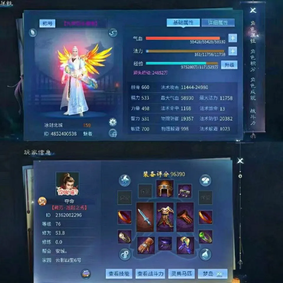 【安卓】 倩女幽魂手游账号【4399版本】安卓租号单绝双绝翅膀神兽凤凰时装玉兔凤凰