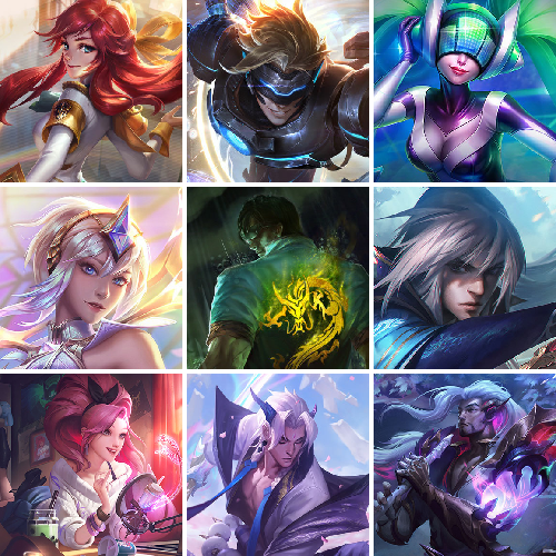 【重要皮肤】玉剑传说琴仙子至臻 斗魂觉醒萨科至臻 墨之影武者亚索至臻 花仙使者卡特琳娜至臻 剪纸仙灵希维尔至臻 灵魂莲华易至臻 星之守护者辛德拉至臻 神凰行者烈羽焰凰霞至臻 女帝黛安娜至臻 太空律动璐璐至臻 魔女婕拉至臻 魔女乐芙兰至臻 奥术师佐伊至臻 星之守护者索拉卡至臻 灵魂莲华提莫至臻 灵能特工伊泽瑞尔至臻 源计划阴劫至臻 黑夜使者凯隐至臻 神龙尊者均衡之龙沃利贝尔至臻 KDA二代卡莎至臻 KDA阿狸至臻 战斗学院拉克丝至臻 战斗学院拉克丝2022至臻 魅惑女巫厄运小姐至臻 真实伤害奇亚娜至臻 绒毛菲兹至臻 腥红之月亚托克斯至臻 未来战士锤石至臻 未来战士锤石2022至臻 黑夜使者李青至臻 黑夜使者李青2022至臻 灰烬征服者潘森 海克斯科技克格莫 海克斯科技拉莫斯 水晶圣骑蕾欧娜 黎明使者卡尔玛 胜利女神娑娜 胜利之王泰达米尔 胜利巨口克格莫 舞会公主安妮 庆典女皇艾尼维亚 安妮梦游仙境 电玩勇者锐雯 电玩女神阿狸 玉剑传说无影 玉剑传说神机花火 玉剑传说舞龙卫 玉剑传说翼剑仙 黎明使者薇恩 龙的传人李青 银龙裁决泰隆 替父从军花木兰 神龙烈焰金克丝 碧玉之牙卡西奥佩娅 南天之怒沃里克 玉净夜叉凯特琳 紫金罗刹莫甘娜 广寒仙子嫦娥 张辽文远 司马懿仲达 纳财大帝塔姆 神龙之翼库奇 王国机神青龙德莱文 福牛守护者嘉文四世 胜利女神瑟庄妮 胜利机器人布里茨 胜利女神奥莉安娜 胜利枪神格雷福斯 胜利枪神卢锡安 胜利之剑亚托克斯 怦然心动凯特琳 意乱情迷蔚 水晶玫瑰阿克尚 水晶玫瑰迦娜 觅心猫猫悠米 幽梦玫瑰辛德拉 水晶玫瑰婕拉 水晶玫瑰斯维因 北极星神黛安娜 寒冬精灵璐璐 雪球也能爆炸吉格斯 圣诞老人德莱文 冰雪驯鹿波比 冬季仙境卡尔玛 狂心冰王图奇 冰雪女神辛德拉 魄罗骑士瑟庄妮 平安夜女神娑娜 伯爵卡萨丁 死亡誓约劫 灵魂收割者索拉卡 克烈古拉伯爵 海之歌艾希 泳池派对凯特琳 泳池派对奥莉安娜 泳池派对菲奥娜 泳池派对格雷福斯 泳池派对李青 泳池派对雷克顿 电玩战魂赫卡里姆 斩星魔剑易 克格汪 制胜金靴李青 EDG格雷福斯 EDG佐伊 DWG凯南 DWG奈德丽 SSG嘉文四世 SKTT1扎克 SKTT1烬 SKTT1瑞兹 SKTT1阿兹尔 SSW锤石 SSW雷恩加尔 SSW泰隆 SSW图奇 SSW辛吉德 SKTT1贾克斯 SKTT1婕拉 暗杀星蒙多 暗杀星努努和威朗普 Fnatic迦娜 Fnatic库奇 Fnatic古拉加斯 Fnatic嘉文四世 Fnatic卡尔萨斯 冰雪节玛尔扎哈 冰雪节辛吉德 冰雪兽纳尔 防暴士兵格雷福斯 防暴士兵辛吉德 冠军掠夺者卡兹克 冠军之血希瓦娜 冠军之隐劫 鬼影森森茂凯 鬼影重重魔腾 惊悚派对阿木木 警用试作体K9内瑟斯 南瓜头费德提克 圣诞开心鬼提莫 圣诞狂欢基兰 圣诞狂欢努努和威朗普 圣诞老人古拉加斯 圣诞玩偶波比 圣诞驯鹿克格莫 糖果使徒费德提克 外星装甲库奇 无头骑士赫卡里姆 喜庆之树茂凯 邪恶圣诞老人维迦 幸福女神乐芙兰 雪默丁格 雪球也能爆炸吉格斯 野兽猎人德莱文 野兽猎人瑟庄妮 野兽猎人泰达米尔 英勇玩具兵普朗克 永恒之森乐芙兰 勇者阿狸 暗影沃里克 冠军之箭艾希 阿木木主人不要我了 波比的巧克力工坊 都铎王朝图奇 十五周年纪念希维尔 十周年纪念安妮 源代码乐芙兰 神凰行者瑞羽圣凰艾尼维亚 胜利凤凰艾尼维亚 DJ娑娜 大元素使拉克丝 未来战士伊泽瑞尔 武装战姬厄运小姐 KDAALLOUT萨勒芬妮独立音乐人 KDAALLOUT萨勒芬妮明日新星 KDAALLOUT萨勒芬妮超级巨星 绝息圣堂洛