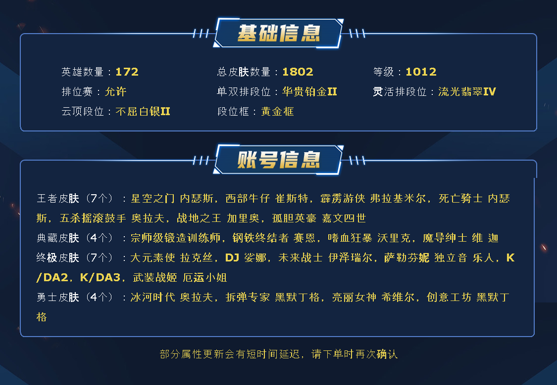 ~~喜欢记得收藏~~可排位~~1453皮全英雄丨50神话/至臻/海克斯丨龙瞎/龙的传人丨神龙尊者套丨灵魂莲华套丨幻灵套丨KDA套丨青花瓷套丨斩星剑圣丨猫狗大战套丨水晶玫瑰套丨泳池女警丨觅心悠米丨哨兵薇恩丨女帝卡特丨银龙裁决丨嫦娥皎月丨替父从军丨律动格温丨羊年金克斯丨鼠年德莱文丨北极星皎月丨西部天使艾希丨安妮梦游仙境丨电玩瑞雯人马丨EDG佐伊男枪丨幽梦玫瑰辛德拉丨玉剑男刀剑姬剑圣丨星守狐狸卡莎风女丨至高天奎桑提薇古丝~~租之前尽量查一下游戏ID,确保段位是您需要的,避免浪费您的时间~~请勿挂机逃跑故意送人头,谢谢合作,谢谢~~