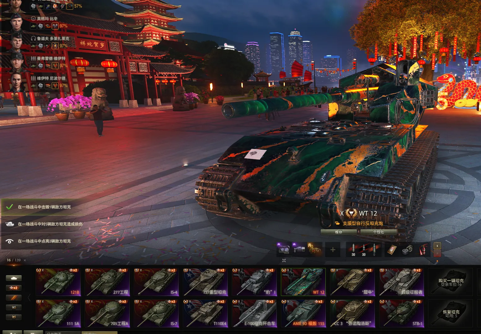 注意事项:1,进入游戏后,如果车辆情况不符。那是因为前面的玩家筛选了自己玩的坦克,其他的隐藏了。坦克显示栏,左下角小坦克标志,点进去把所有系别和级别选上,坦克就全部出来了。