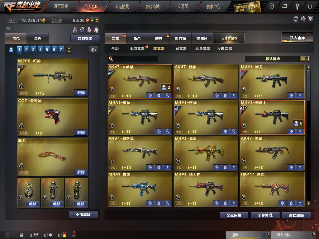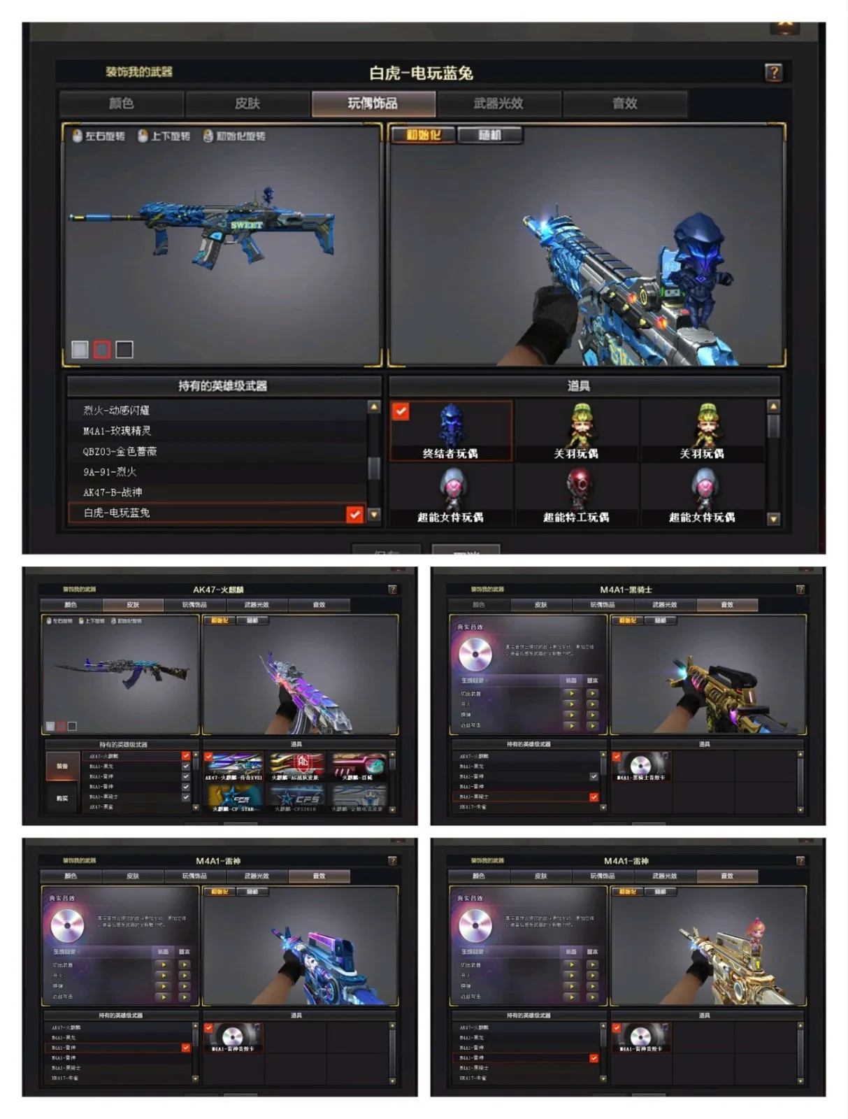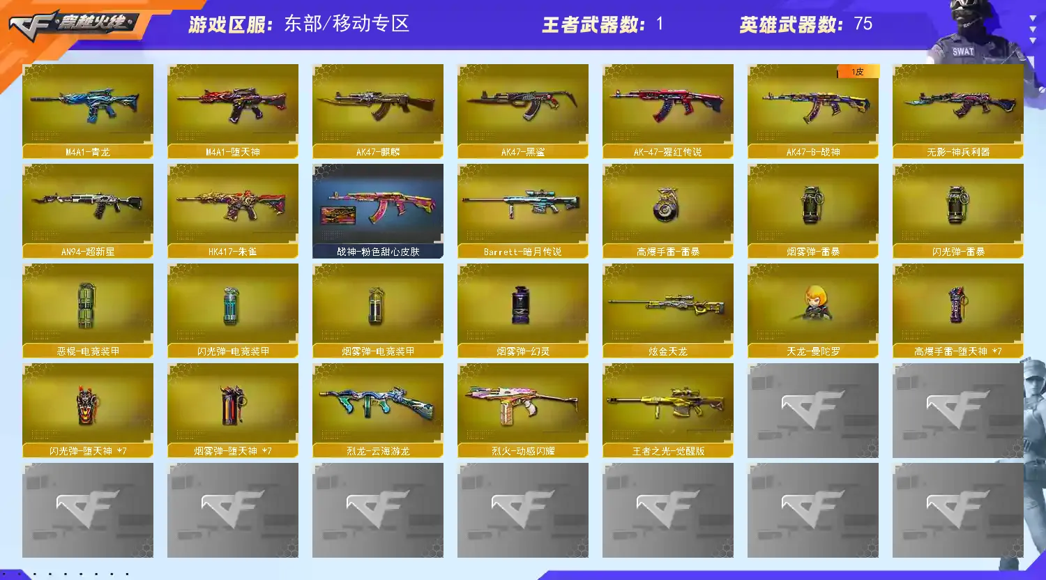 王者武器:王者之光-觉醒版;炫金天龙;天龙-曼陀罗;修罗-年鹏;M4A1-仙界-黑骑士