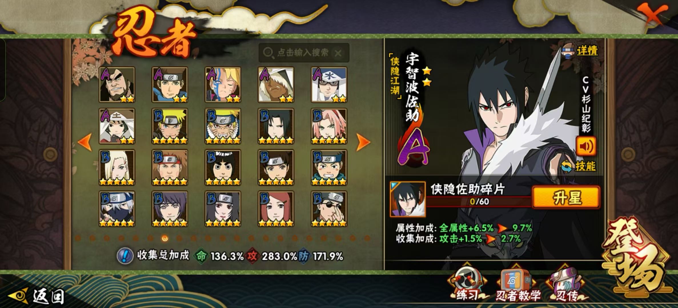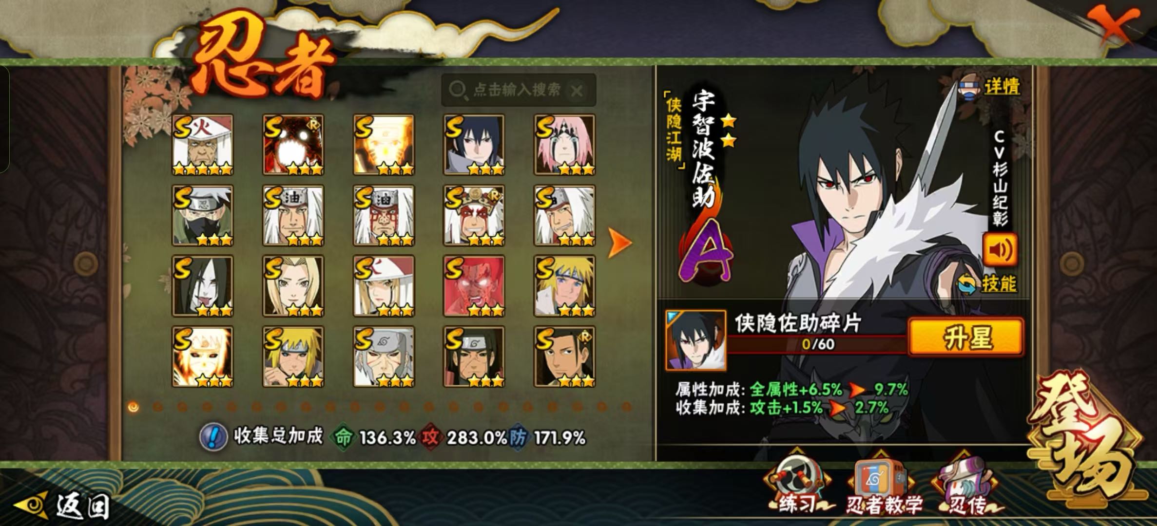 【安卓】 42S妖怪纲手🔥侠隐佐助🔥五影会谈斑🔥九喇嘛水门❤️漂泊带土❤️六尾鸣人 新春大蛇丸 侠隐兜