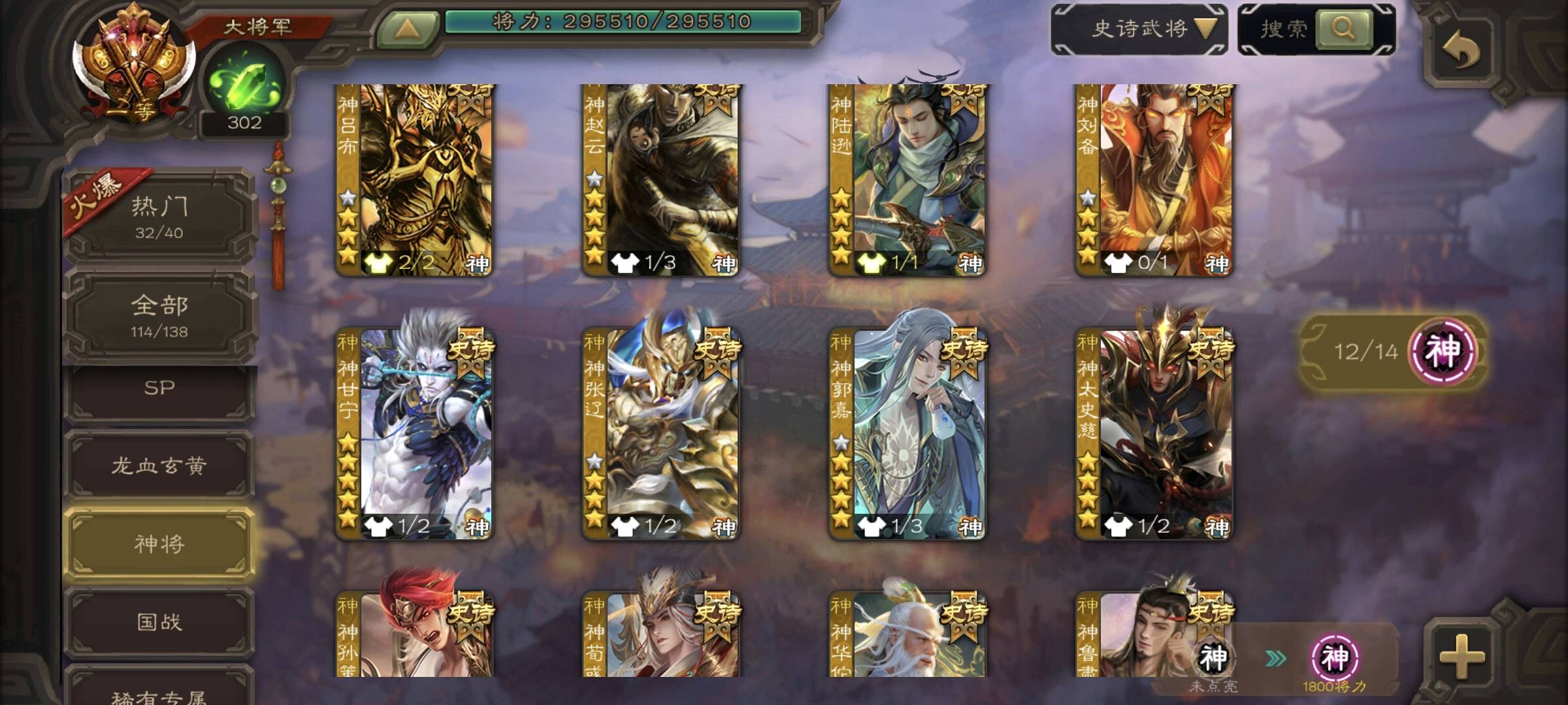 神——神吕布,神赵云,神陆逊,神刘备,神甘宁,神张辽,神太史慈,神荀彧,神郭嘉,神孙策,神华佗