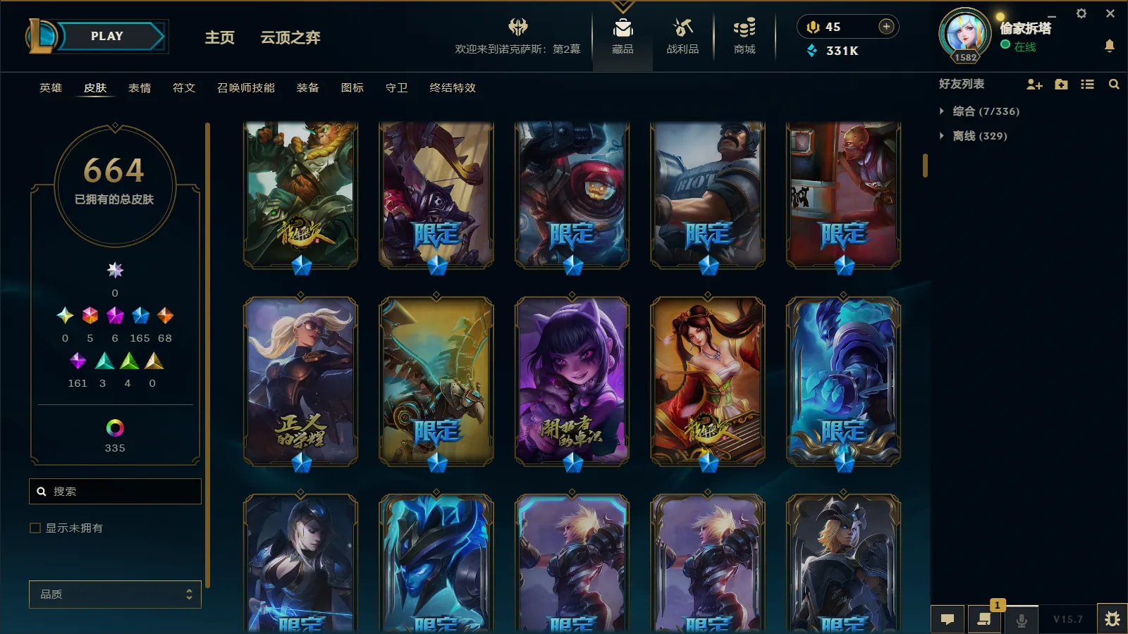 1120皮肤165限定⭐可排位全英雄⭐黑龙瞎诸神的黄昏⭐至臻卡莎斩星魔剑⭐奥斯曼大帝觅心卢锡安⭐战熊骑士卧虎藏龙⭐勇敢的心花木兰⭐广寒仙子地底世界⭐冠军劫冠军之矛⭐冠军之血冠军之箭⭐征服者卡尔玛⭐征服者维鲁斯⭐克格汪鸡里奥⭐银龙裁决哥特萝莉龙年琴女⭐等各种