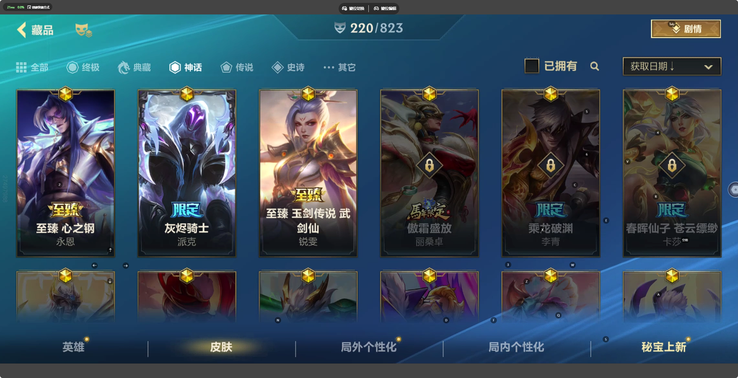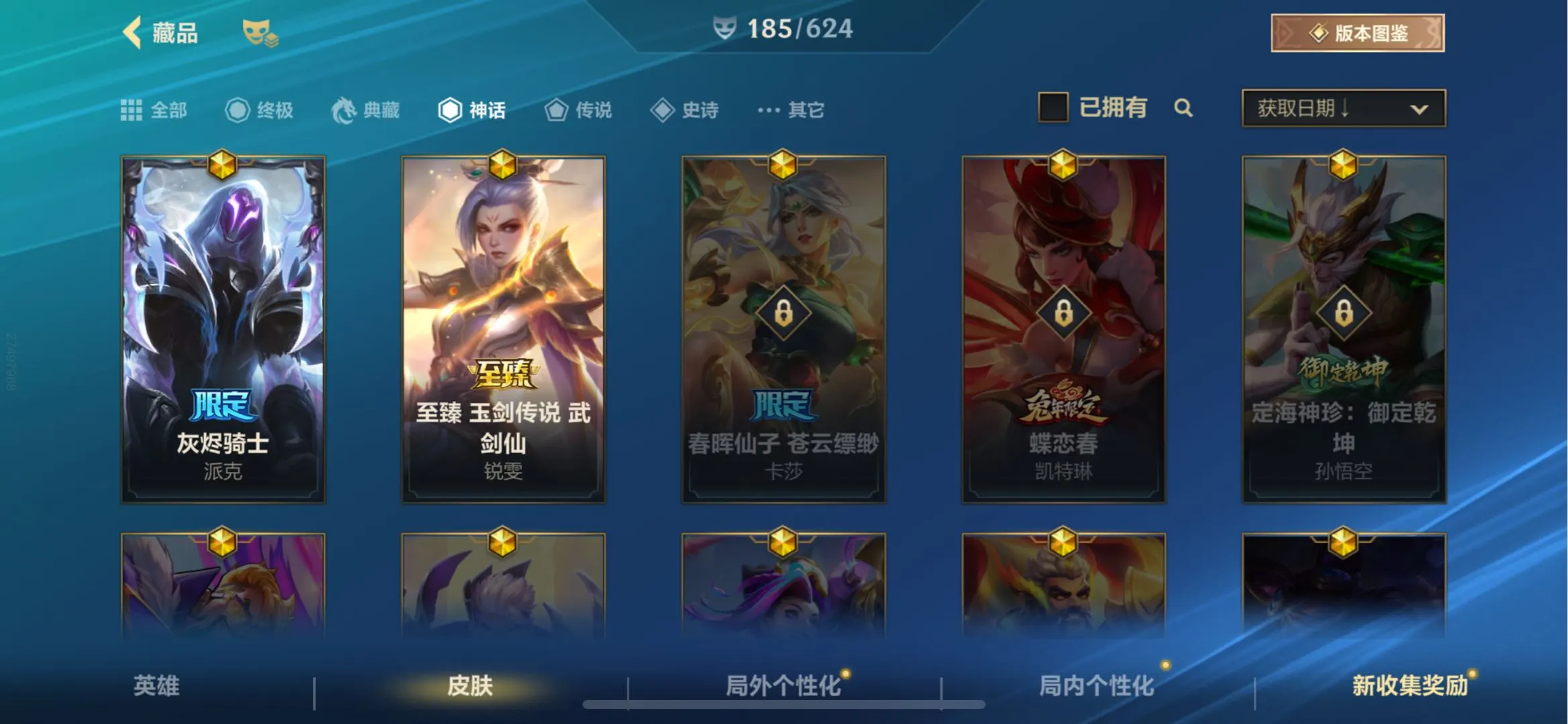 【苹果】 可排位!全英雄 219皮肤 3神话24传说 灰烬骑士派克 剑仙锐雯