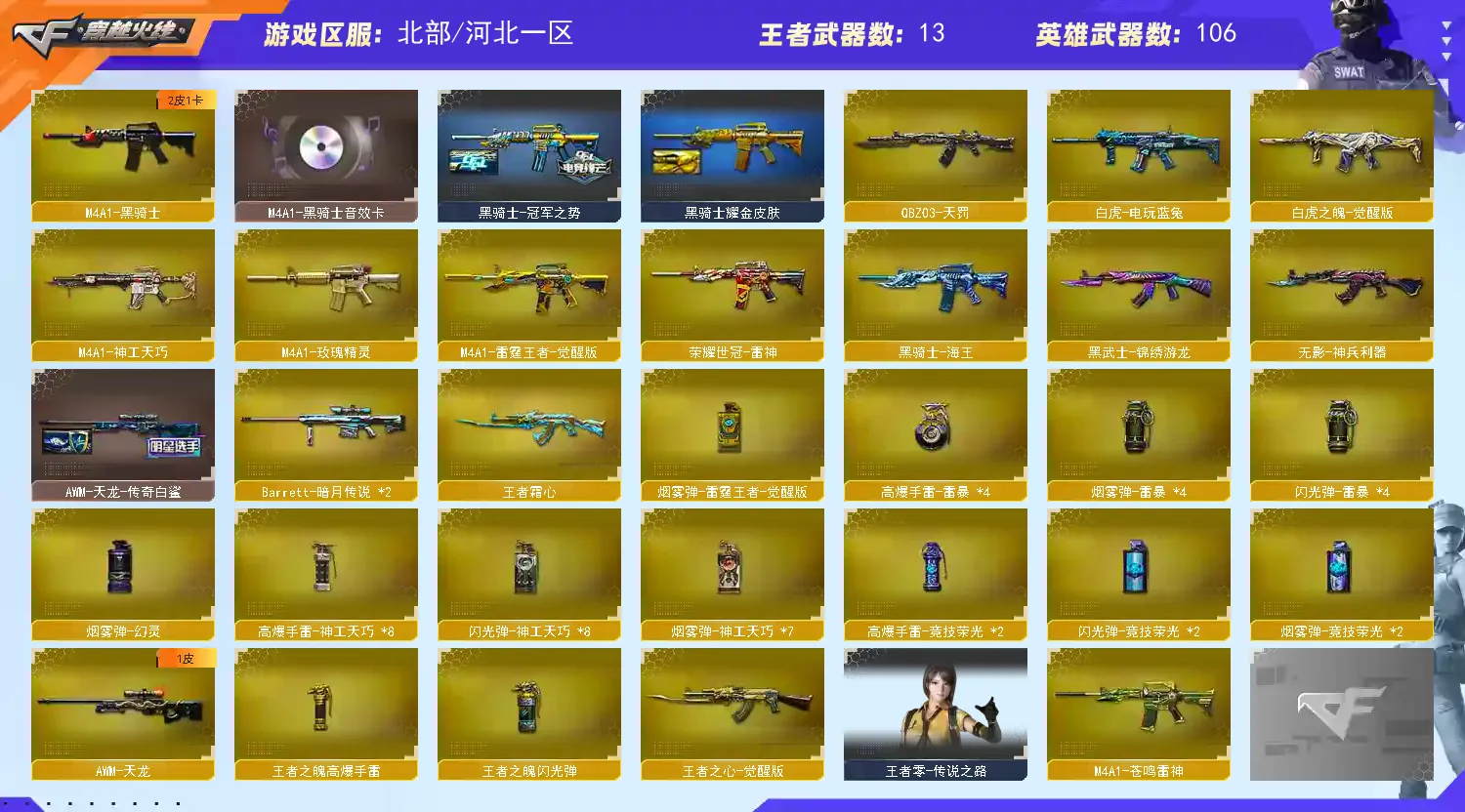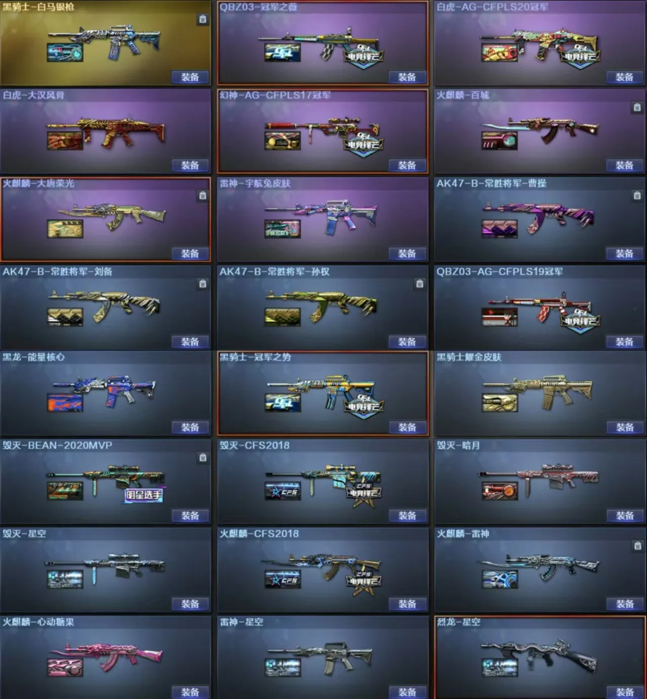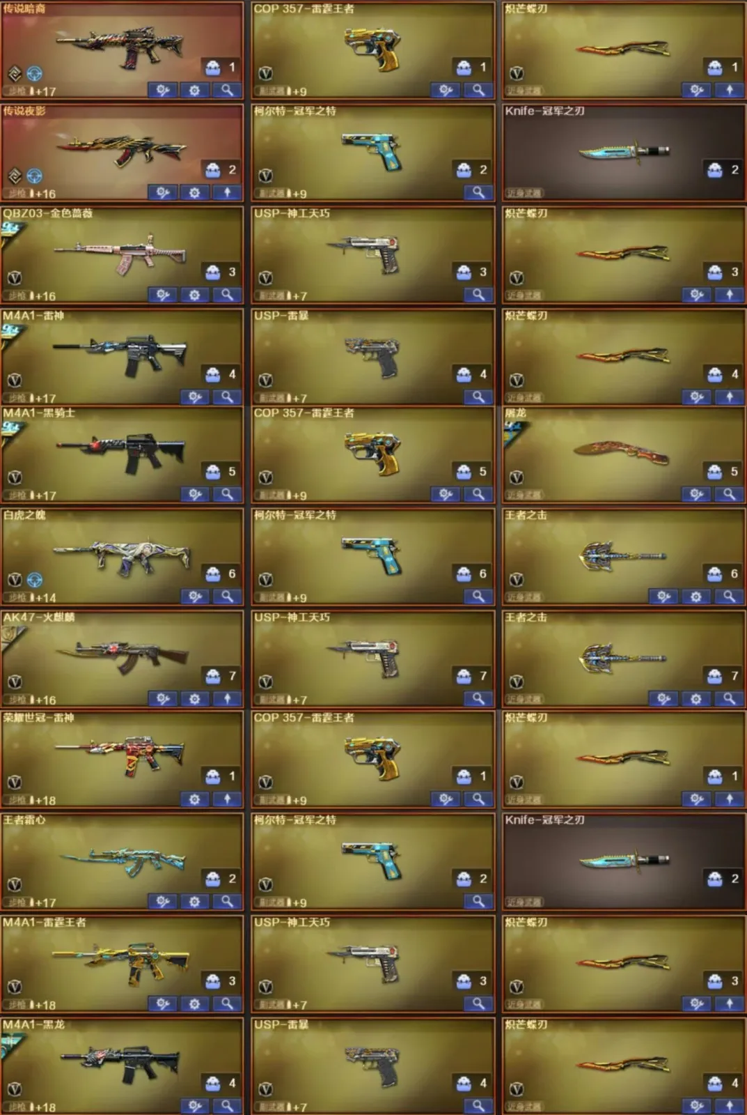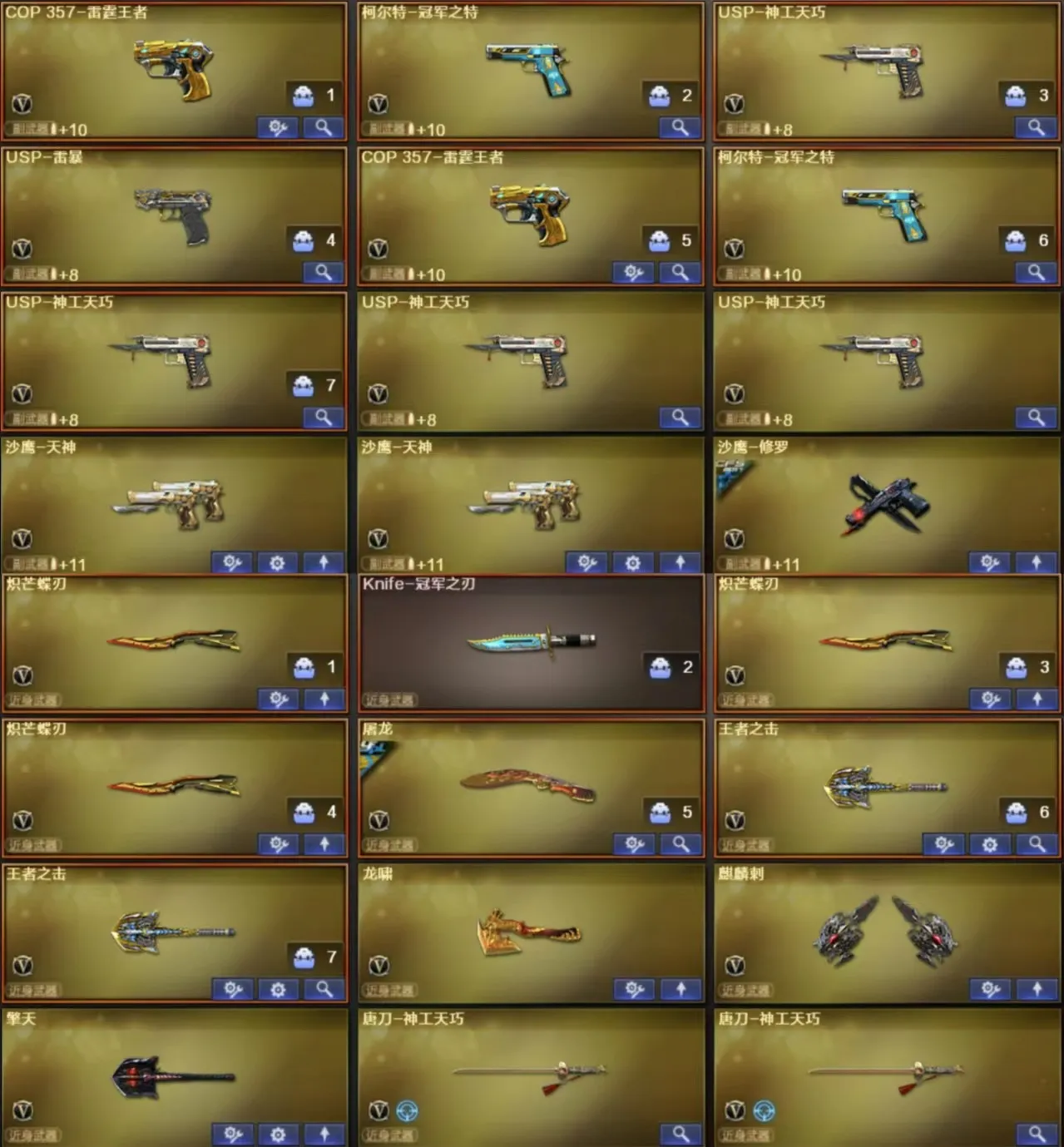 🔥近战:蝴蝶刀x3+屠龙冠军皮+冠军刃+王者擎天x2+唐刀x4🔥