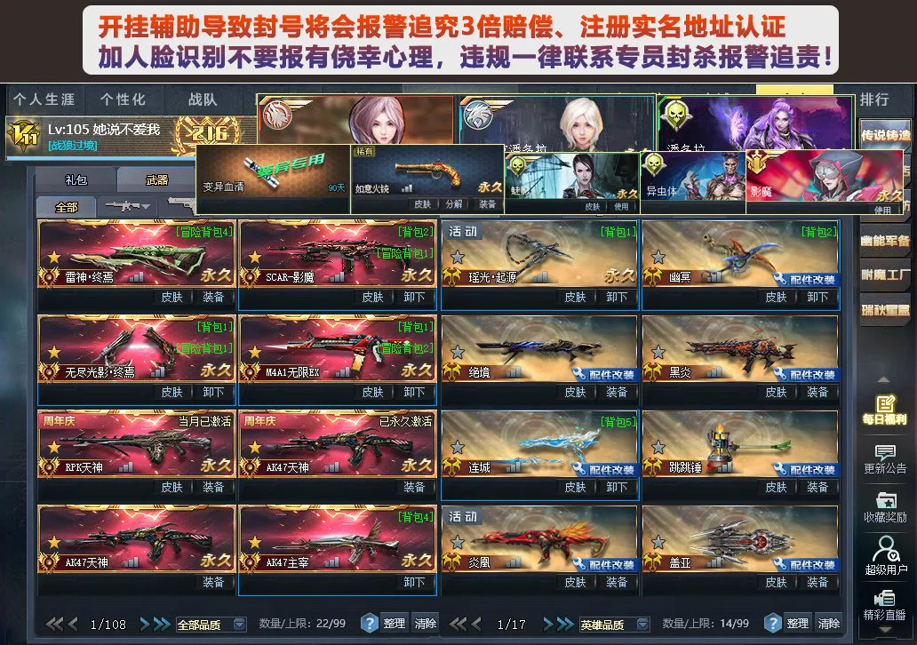 v11血清潘多拉主宰无限EX雷神无尽终焉影魔8传说火铳末世黑炎连城幽冥绝境焚风★240万翎羽幻锋满配