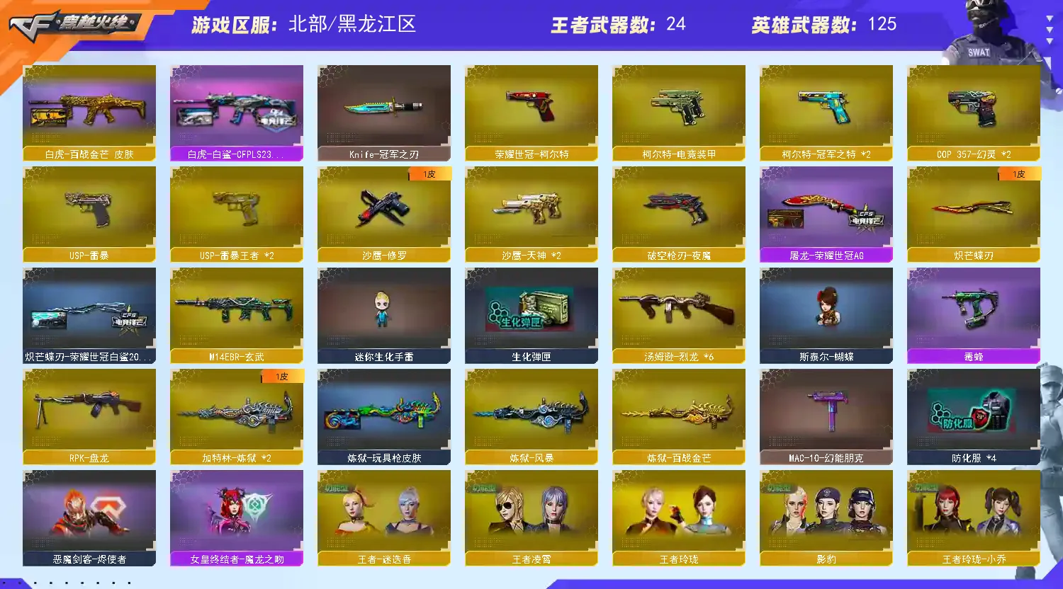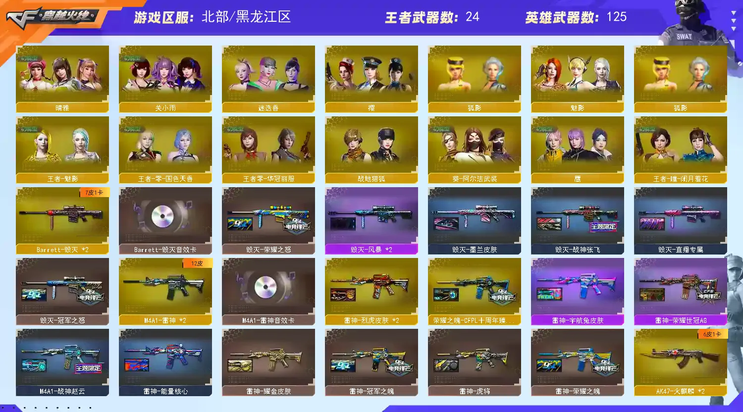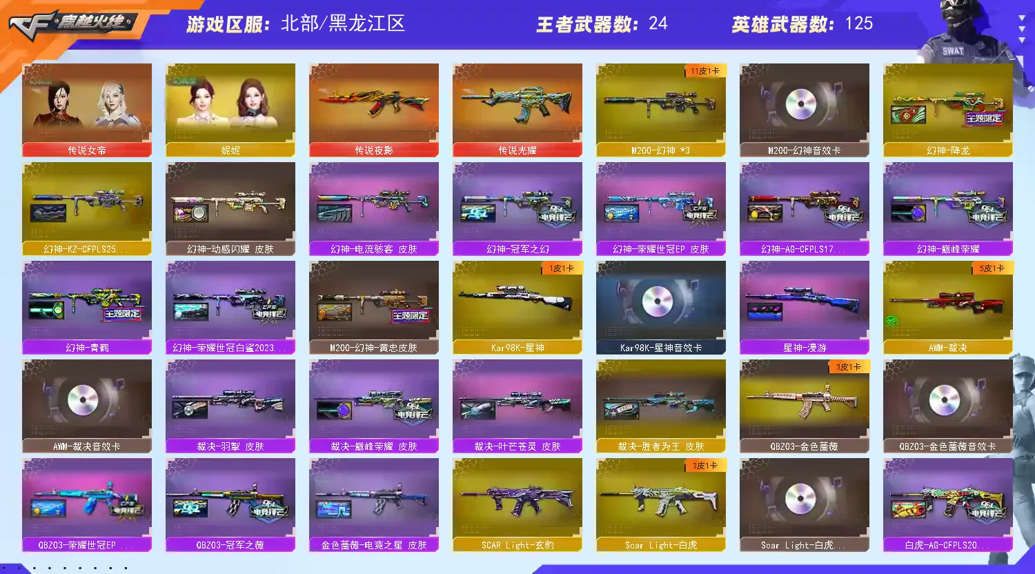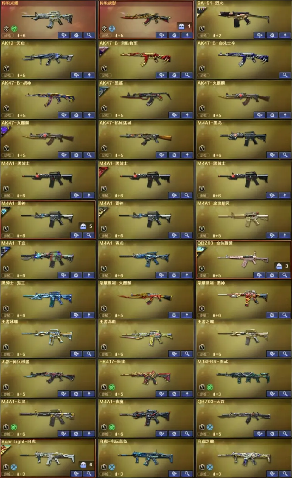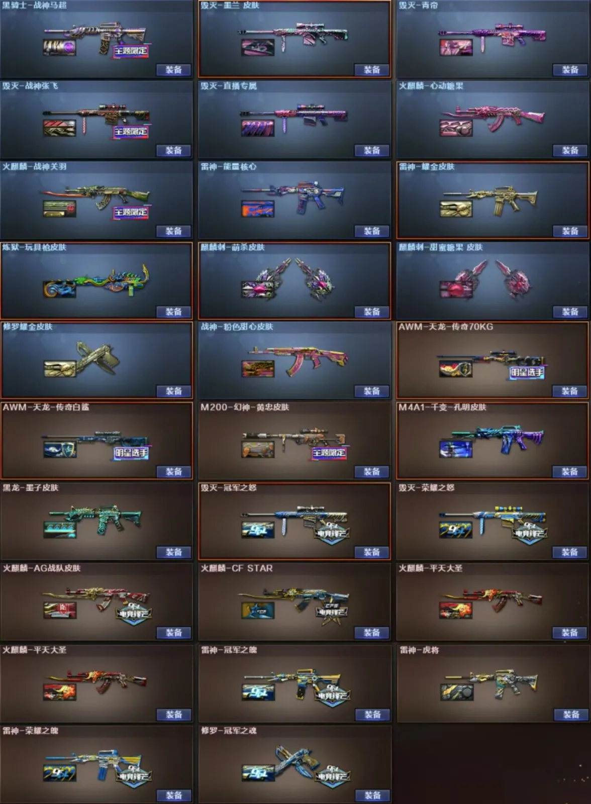 🔥热门枪械:荣耀火麒麟+荣耀雷神+王者冰魄+白虎之魄+王者星神+王者深绝+6烈龙毒蜂蝴蝶🔥