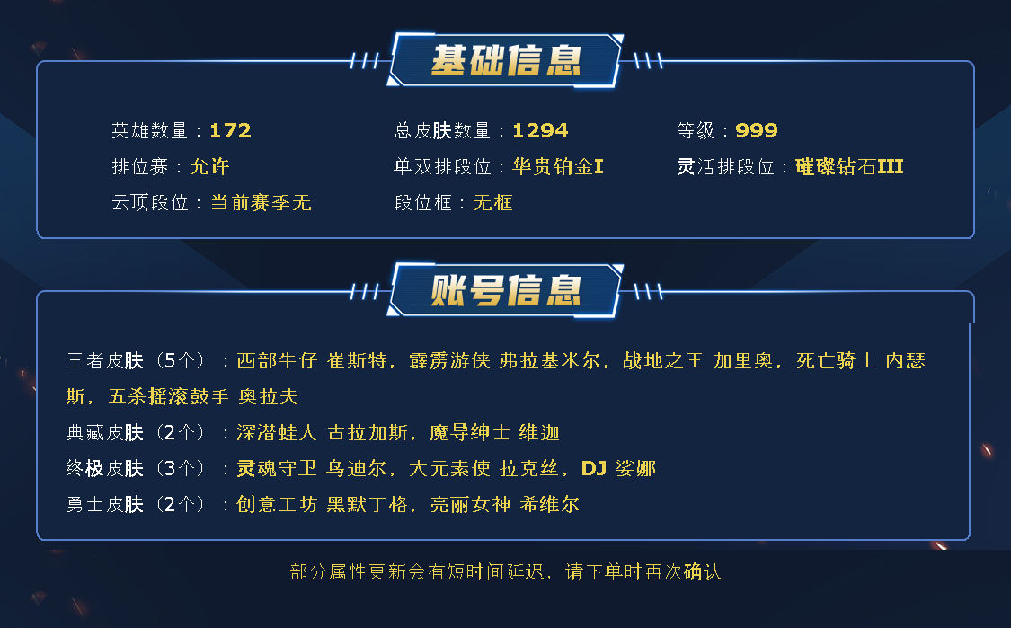 ~~喜欢记得收藏~~可排位~~999皮全英雄丨730原皮229炫彩丨80神话/至臻/海克斯丨灵魂莲华套丨御星艾希丨剪纸刀妹丨甜心格温丨玉剑剑姬丨电玩女警丨星守风女丨银龙裁决丨替父从军丨FPX锤石丨羊年金克斯丨IG剑姬妖姬丨神龙尊者李青丨KDA卡莎寡妇丨鼠年瑟提德莱文丨EDG悠米厄斐琉斯丨幻灵女枪瑞文金克斯丨青花瓷光辉刀妹伊泽丨至高天奎桑提薇古丝~~租之前尽量查一下游戏ID,确保段位是您需要的,避免浪费您的时间~~请勿挂机逃跑故意送人头,谢谢合作,谢谢~~