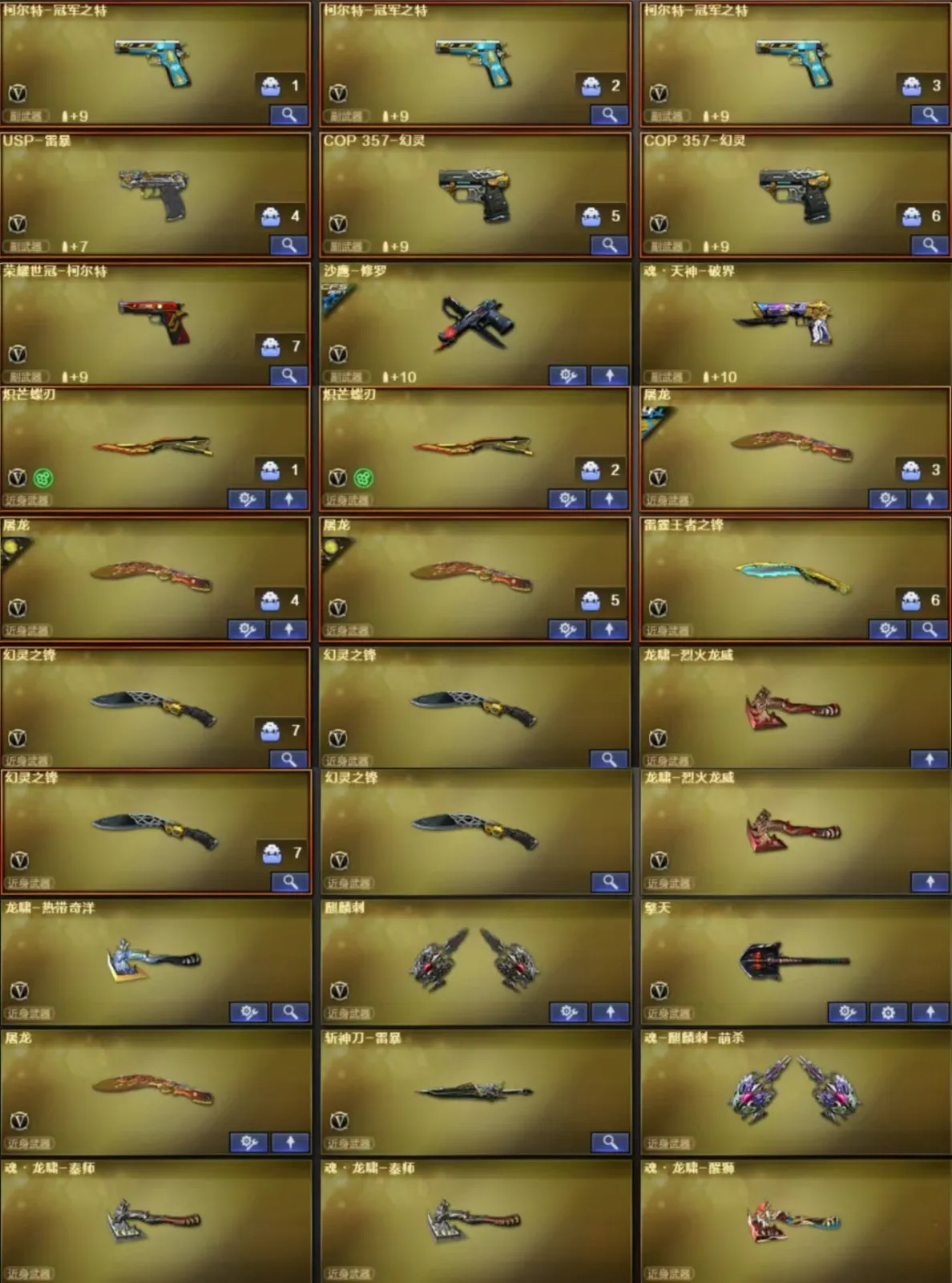 🔥近战:蝴蝶刀x2+幻灵之锋x2+星火屠龙x2+荣耀屠龙+雷霆王者之锋🔥