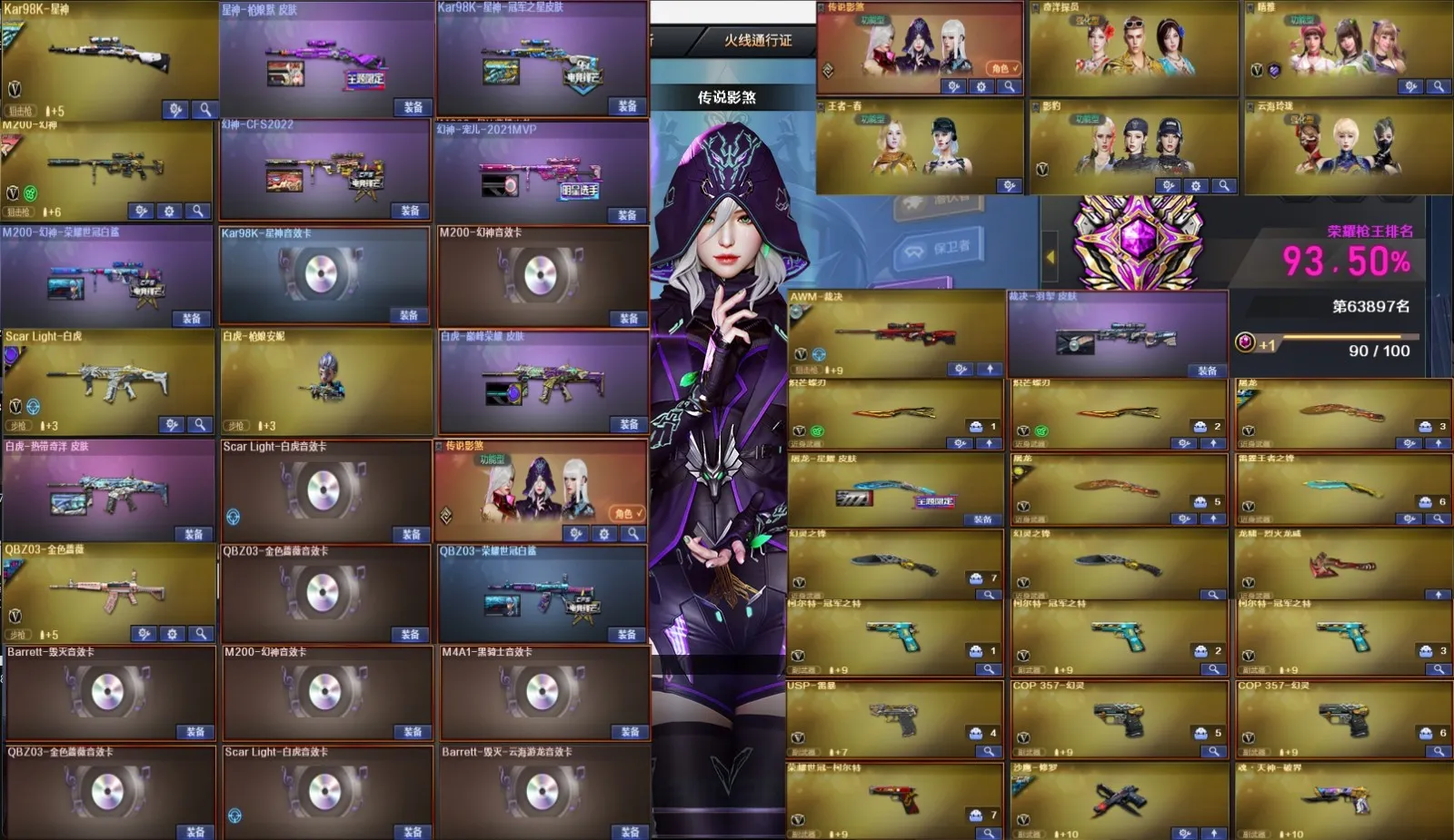 【允许排位】🔥传说影煞+幻神3皮/星神枪娘冠星/蔷薇白鲨/白虎巅峰均带卡3冠特2COP+雷暴世冠特2蝴蝶刀🔥