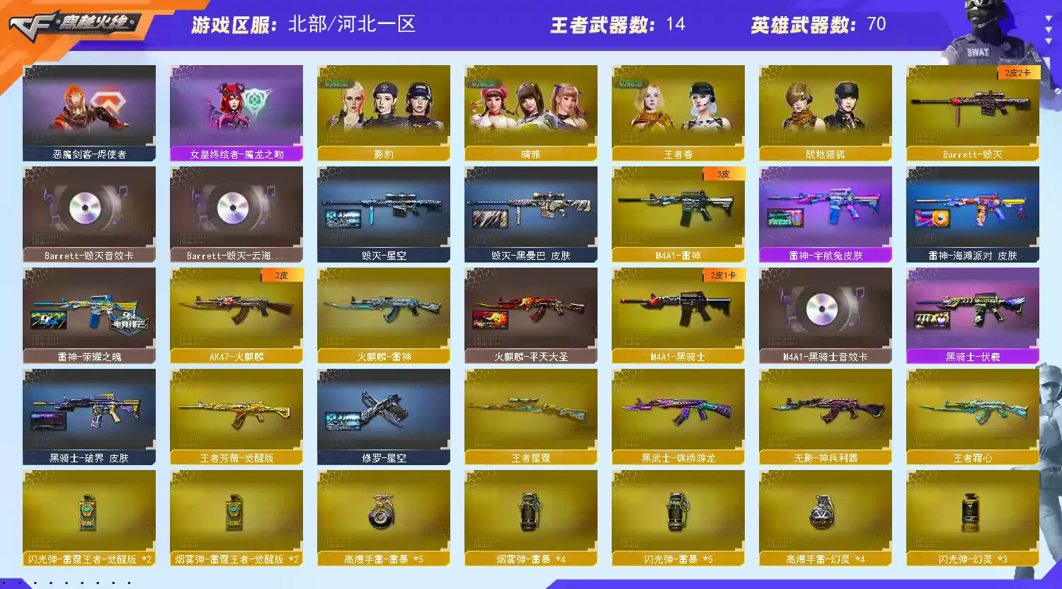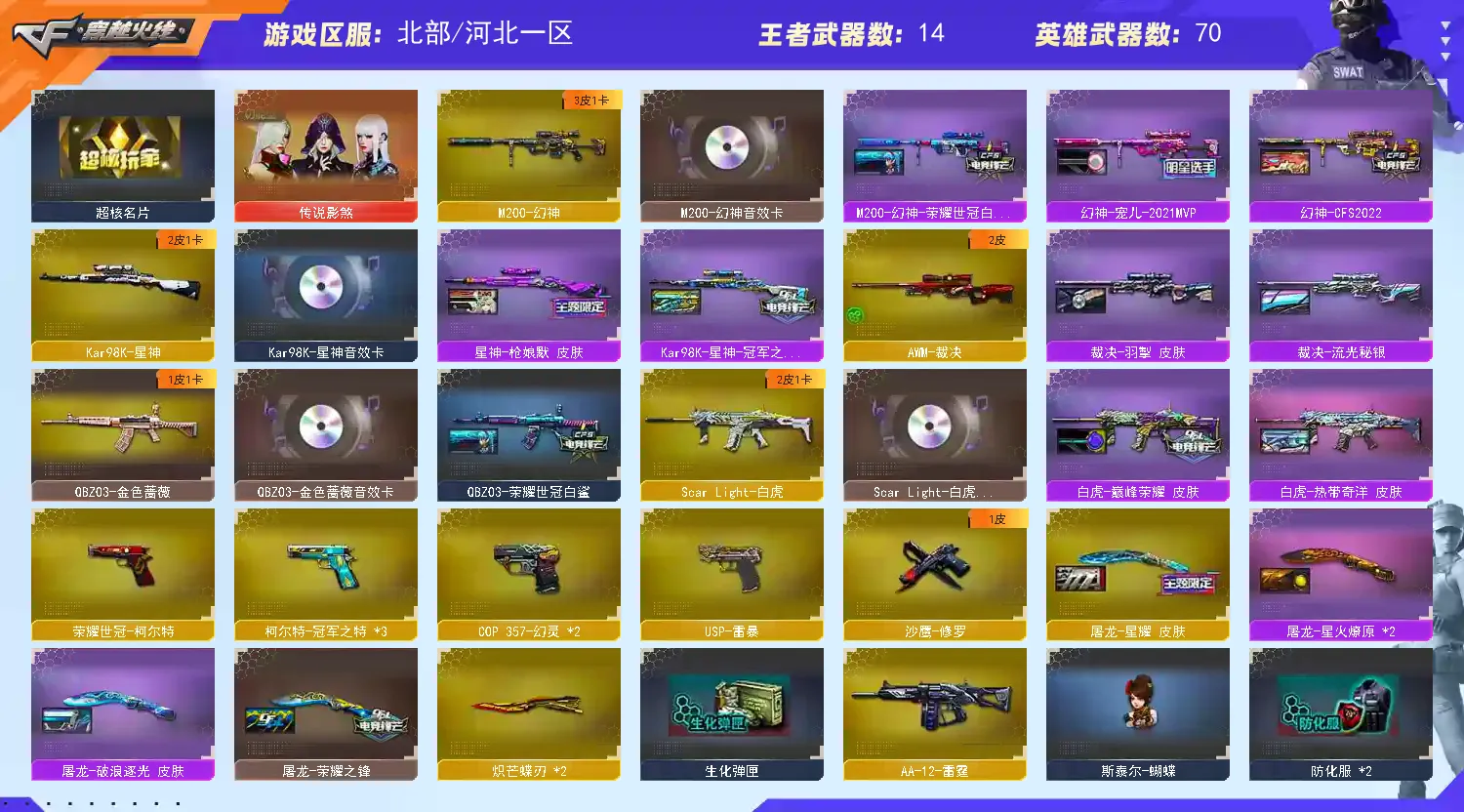 🔥热门枪械:王者星霆+王者之势+王者霜心+王者芳薇+白虎枪娘安妮+王者之锋+2蝴蝶刀+3冠军柯尔特🔥