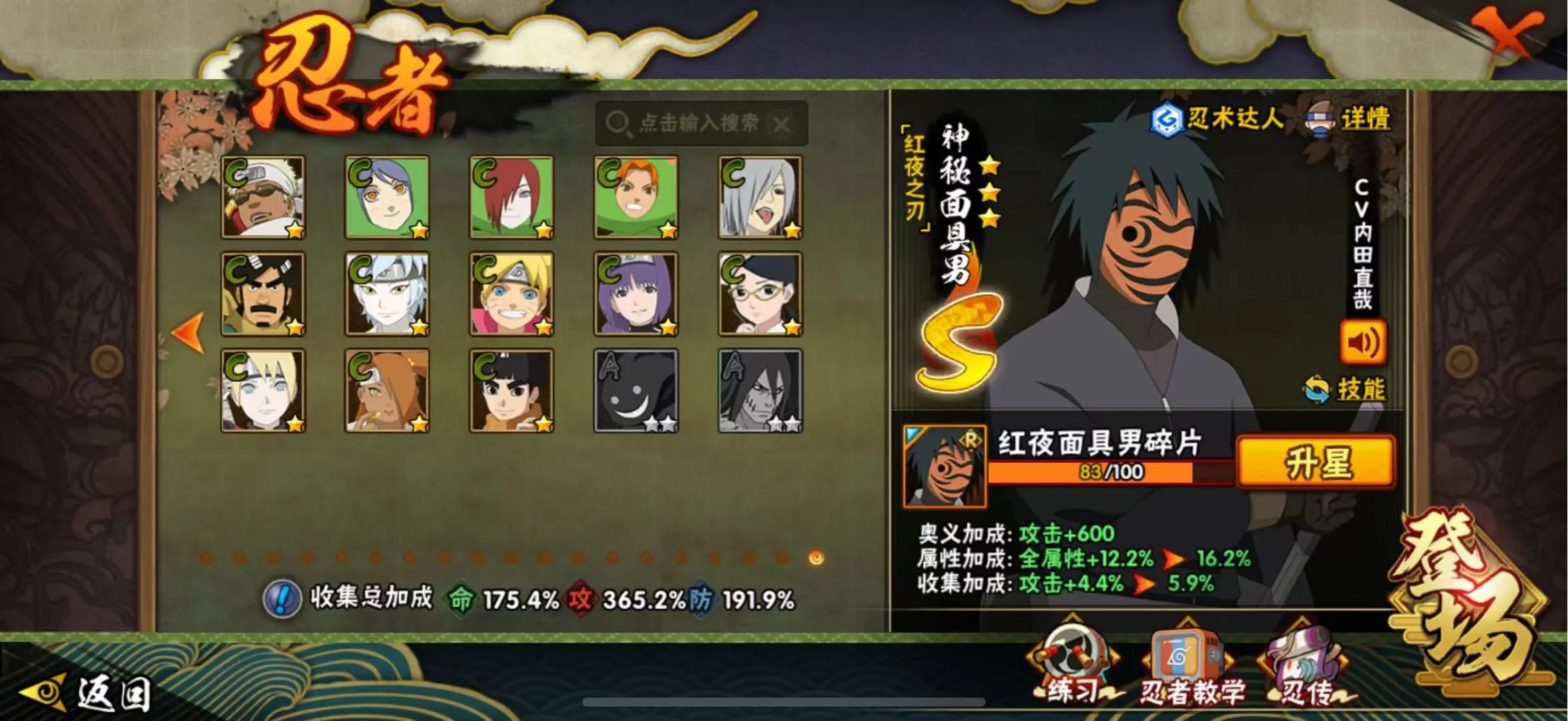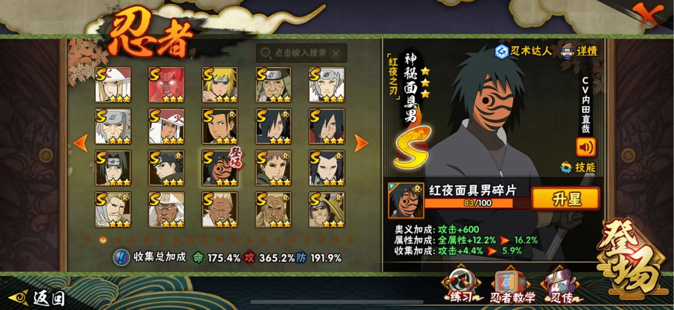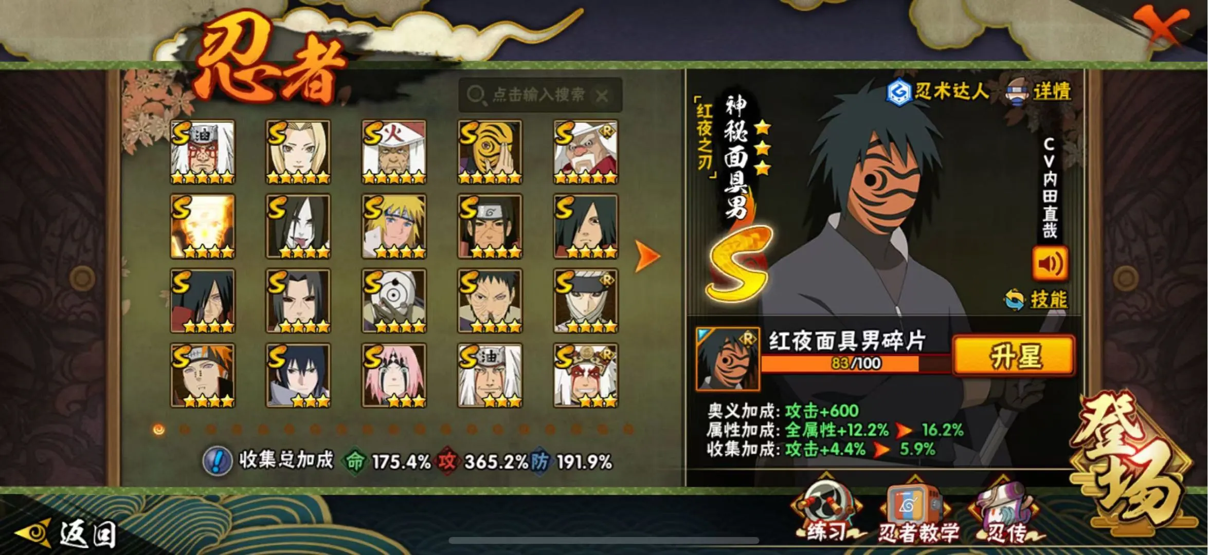 50S 96A 全忍者 小南「神驹佑将」猿飞阿斯玛「神驹佑将」宇智波带土「十尾人柱力」宇智波斑「神驹佑将」巳月「仙人模式」波风水门「九喇嘛连结」宇智波斑「五影会谈」机械鸣人「初始形态」宇智波佐助「侠隐江湖」大野木「侠隐江湖」最终章场景 雨忍村场景 全通灵