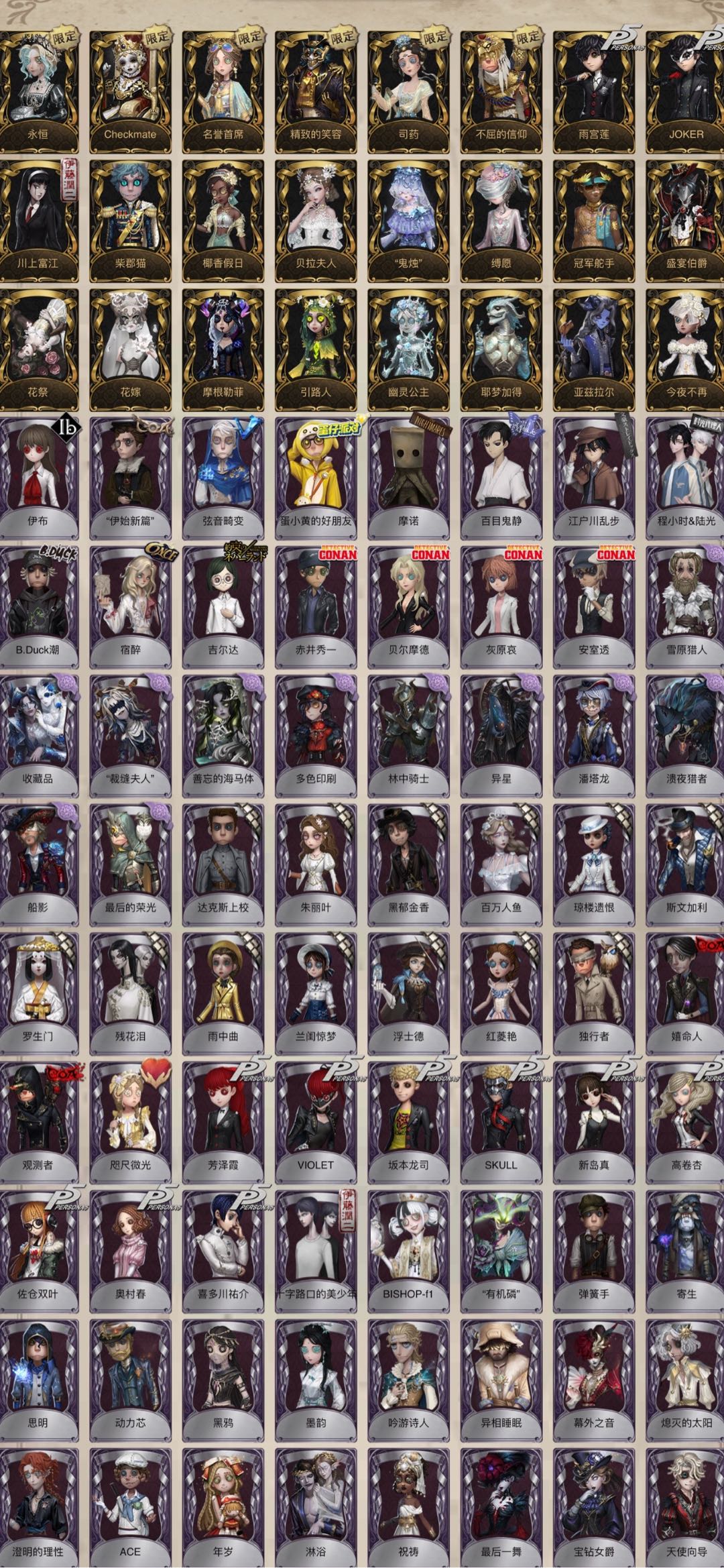 翦烛 筠心 长夏永不凋落 缚愿 鬼烛 摩根勒菲Joker永恒名誉首席checkmate川上富江雨宫莲坂本龙司Skull灰原哀violet 精致的笑容名誉首席不屈的信 Checkmate永恒未至之人 司药套