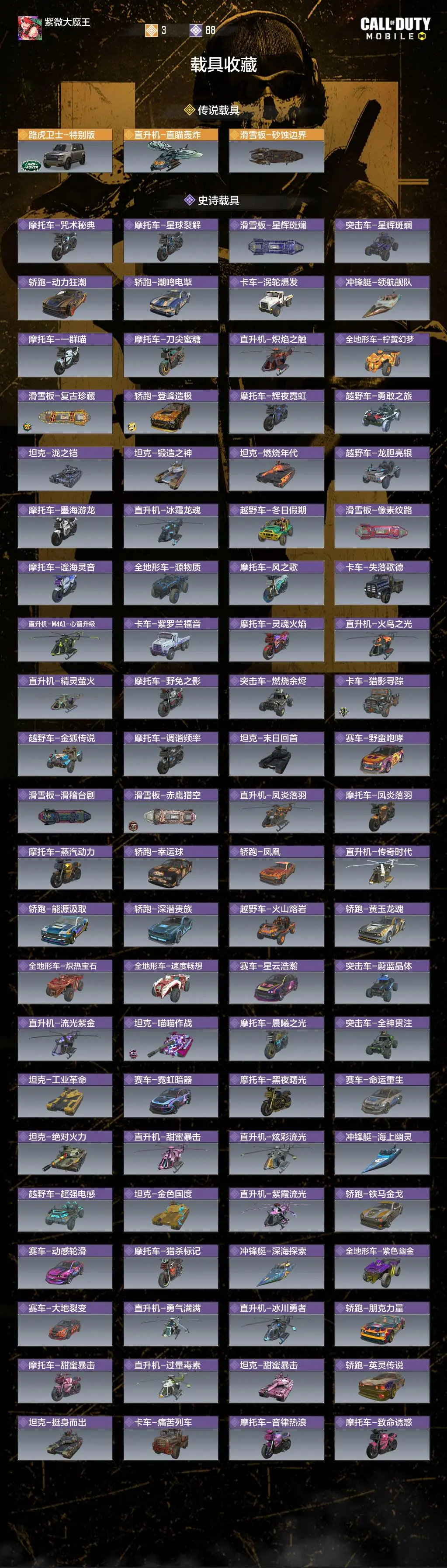 - 传说载具: 3