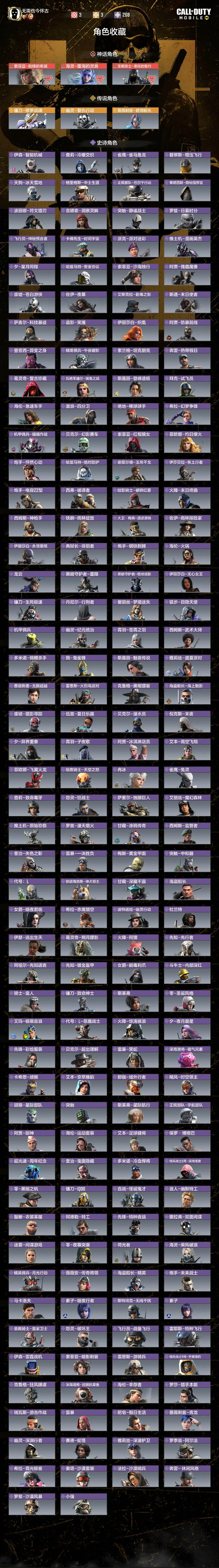 - 传说角色: 3
