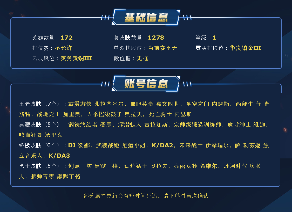 英雄联盟✅百分百上号✅169全英雄✅Dj琴女✅未来战士EZ✅武装战姬厄运小姐✅龙刀龙瞎✅神龙金克丝