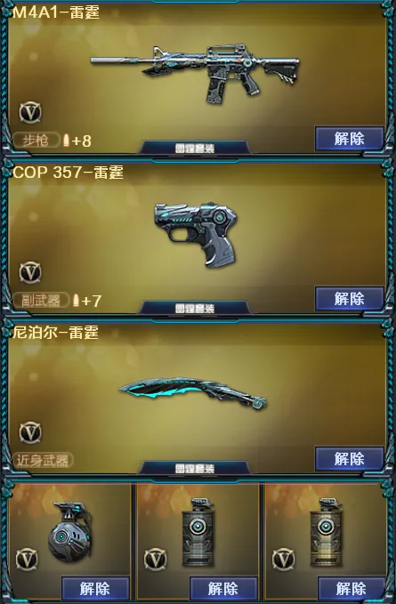 🔥近战:冠军之刃+蝴蝶刀+雷霆屠龙+雷霆斩神刀+星火屠龙+王者之啸🔥