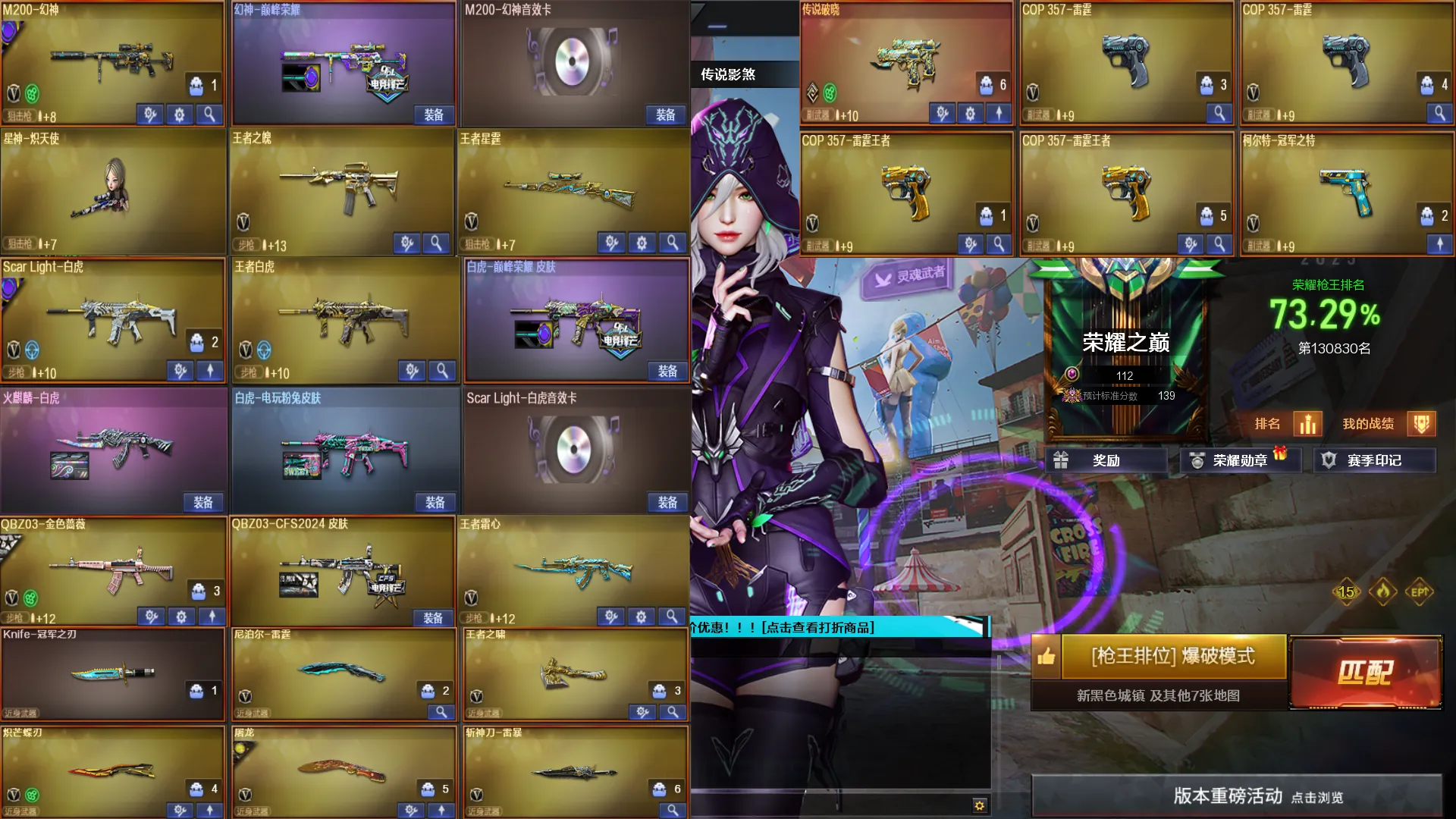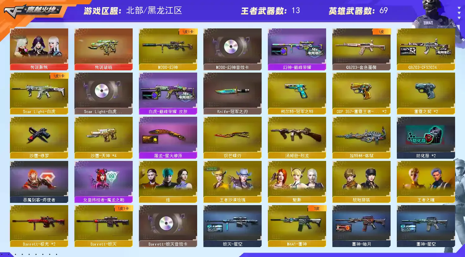 🔥热门枪械:传说影煞+传说破晓+王者白虎+王者星霆+星神炽天使(小人枪)+暗月传说+冠特冠刃蝴蝶刀+王者霜心🔥