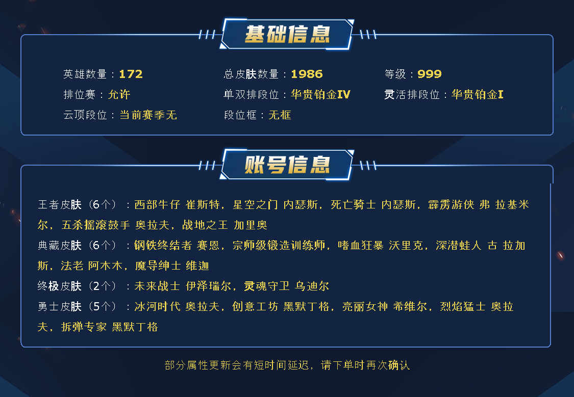 ~~喜欢记得收藏~~可排位~~1600皮全英雄丨1056原皮459炫彩丨120神话/至臻/海克斯丨IG套丨灵魂莲华套丨EDG套丨DRX套丨FPX套丨KDA套丨龙瞎/龙的传人丨斩星剑圣丨创星璐璐丨舞会公主丨哥特萝莉丨泳池女警丨哨兵薇恩丨嫦娥皎月丨替父从军丨虎年赵信丨北极星皎月丨咖啡甜心格温丨玉剑男刀剑圣丨幽梦玫瑰辛德拉丨心之刚厄斐琉斯丨星守狐狸卡莎伊泽丨情人节琴女悠米霞丨青花瓷冰女木木伊泽丨电玩女警女枪卡莎人马丨神龙尊者李青卡莎亚索艾希~~租之前尽量查一下游戏ID,确保段位是您需要的,避免浪费您的时间~~请勿挂机逃跑故意送人头,谢谢合作,谢谢~~