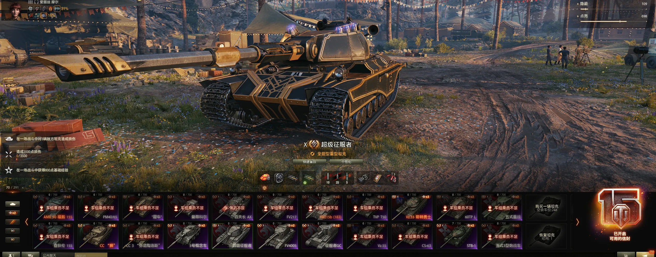 坦克世界75X出租,10金11台:齐天大圣,白云,哥特勇士,铲子豹,780, cc狮,T22,183,268V型等。9金20台:T111歼击车,50吨主战,1b概念,590,眼镜蛇,07hk等。8金102台:BZ-176等几乎所有强势8金。带神车:法五金,不四不五屠幼,黑豹侦查车等。带1200天高级账号,银币加成1000多个