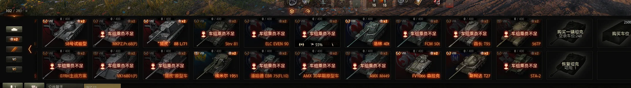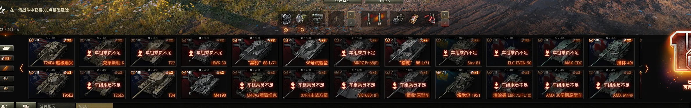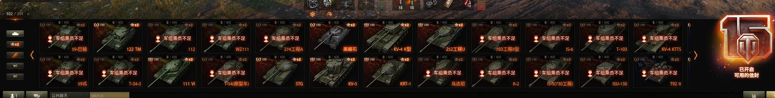 注意事项:1,进入游戏后,如果车辆情况不符。那是因为前面的玩家筛选了自己玩的坦克,其他的隐藏了。坦克显示栏,左下角小坦克标志,点进去把所有系别和级别选上,坦克就全部出来了。