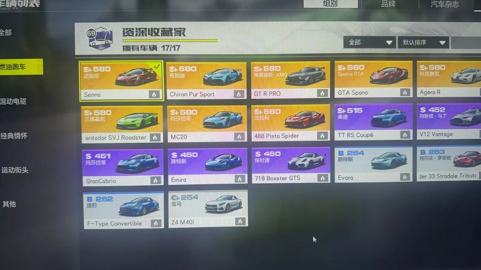 金车全满改。迈凯伦塞纳,布基迪威龙+鲨鱼套装。新限定奥迪r8,兰博基尼战斗机。看图。