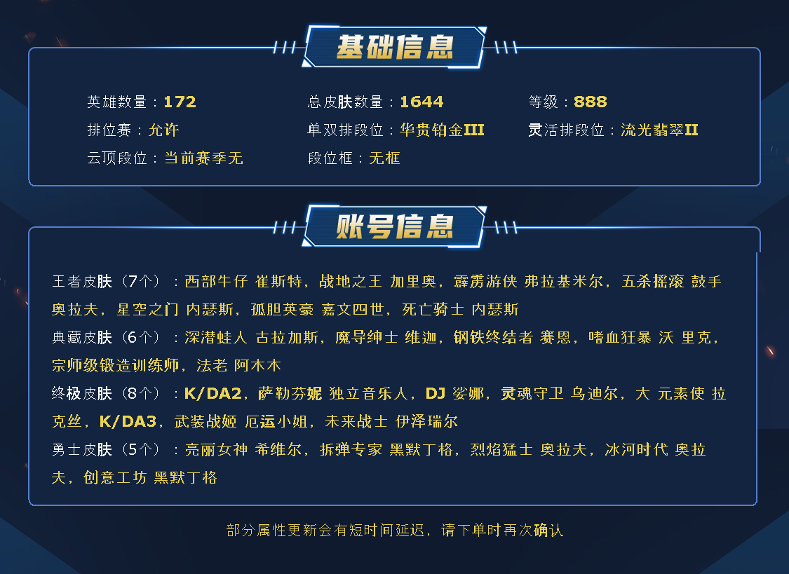 果壳丨可排位丨艾欧尼亚丨1420皮丨海魔至尊丨殿堂传奇阿狸丨商城清空丨玉剑男女刀丨抵抗军丨心之钢