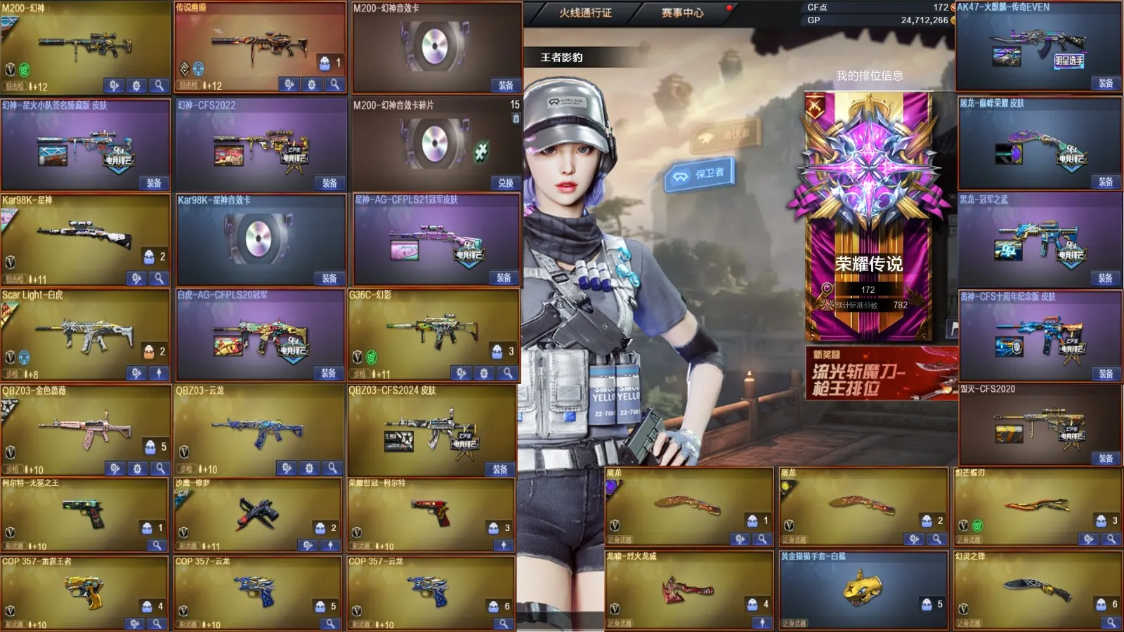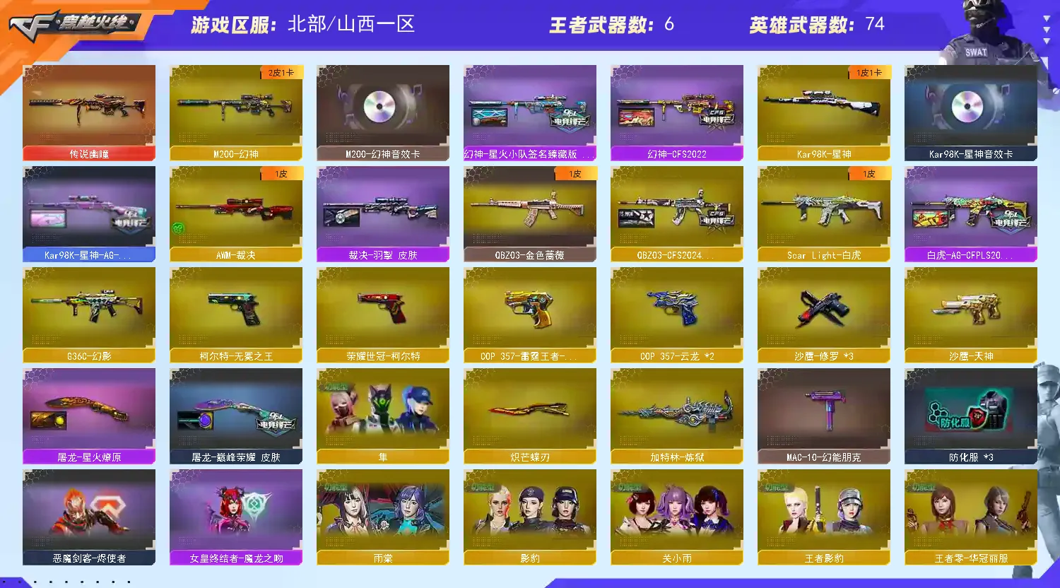 【允许排位】允许打字✨幽瞳+幻神星火虎皮带卡+星神AG带卡+白虎AG+蔷薇CFS皮+幻影+无冕3COP+蝴蝶刀✨