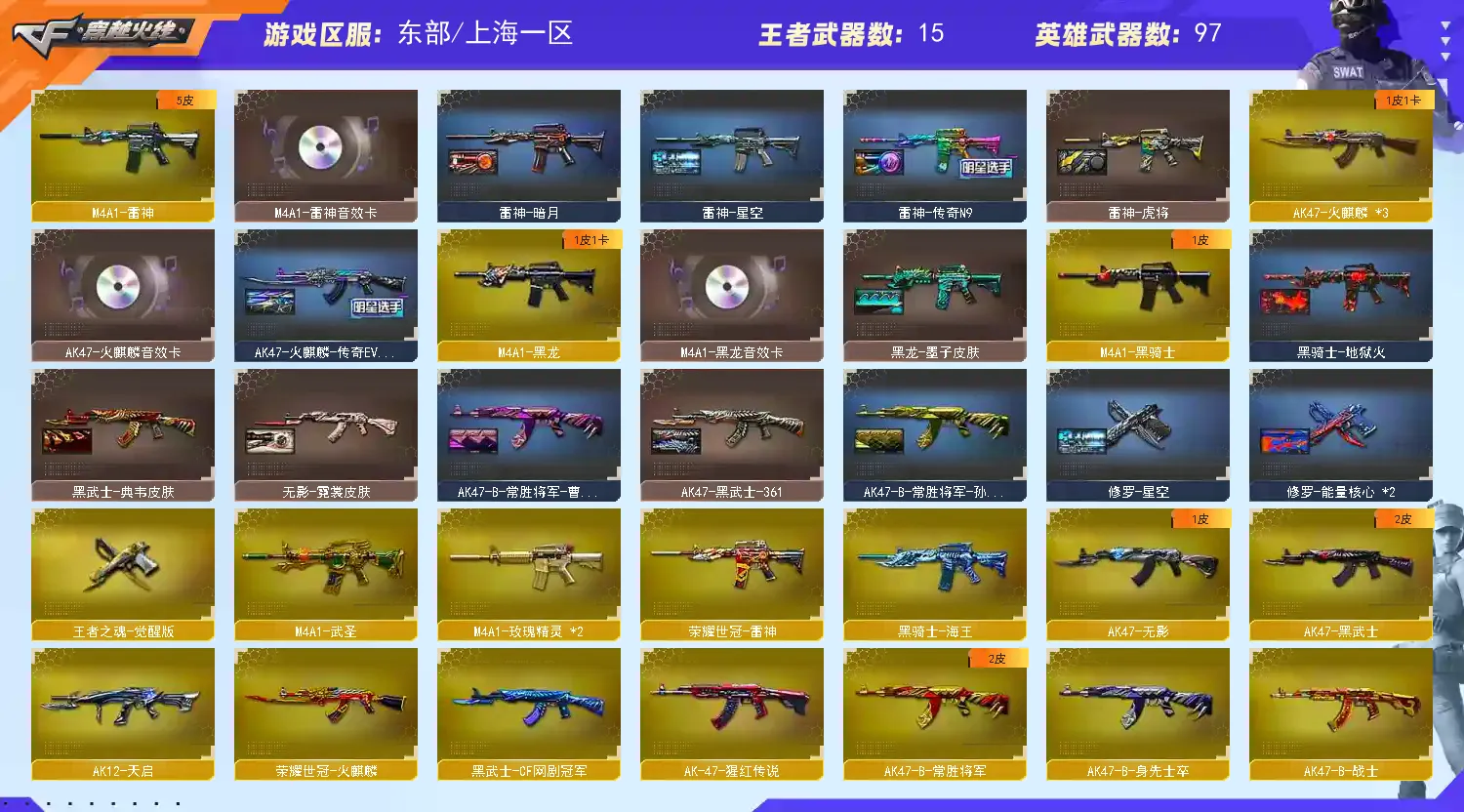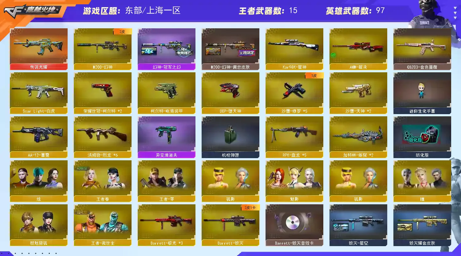 上海一区可排位[104v][送湖北一区38v]【1传说]【m200幻神+幻神冠军之幻+幻神黄忠][2世冠柯尔特cop堕天神]【星神][传说光耀]【荣耀世冠套+网剧套]【白虎+朱雀+朱雀大炮]【雷神传奇n9+雷神白鲨+火麒麟传奇even+毁灭sv冠军+黑骑士地狱火]【毁灭音效卡+雷神音效卡+火麒麟音效卡+黑龙音效卡]【王者春+灵狐者职业经理+职业选手+绝迹语音包]【金色蔷薇+猎神]【5盘龙+6烈龙+异变清道夫]【火麒麟绝迹+火麒麟灵狐