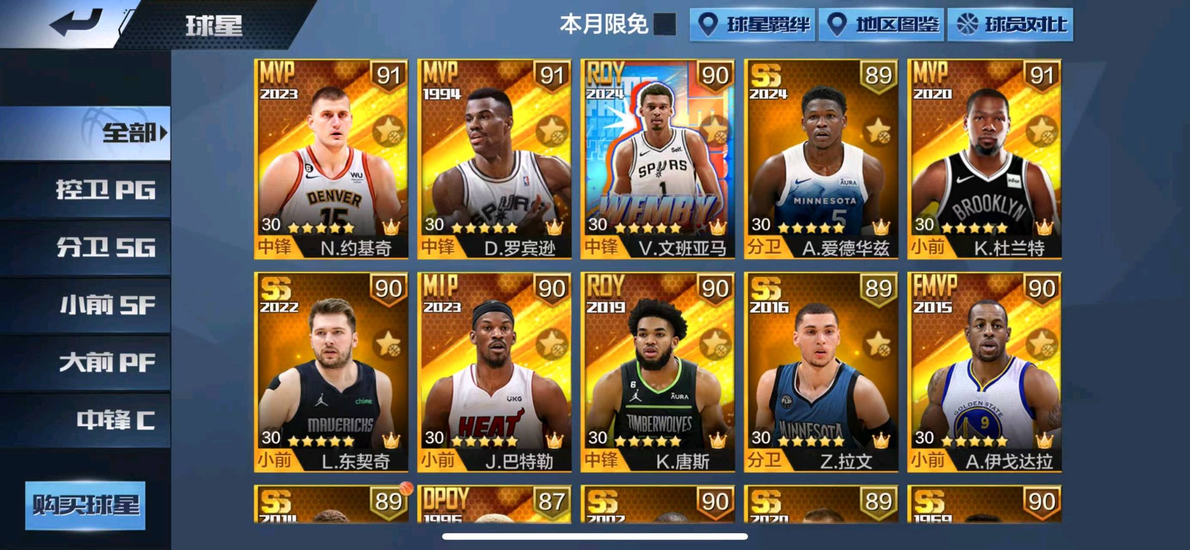 【苹果】 天选杜兰特东契奇约基奇,金州拉文,硬汉文班亚马,罗宾逊邓肯唐斯,爱德华兹格里芬卡特,伊戈达拉