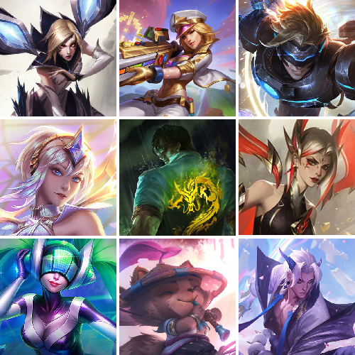 【重要皮肤】黑色玫瑰假面舞会卡特琳娜至臻 至高天凯尔至臻 青花瓷千珏至臻 天龙之子伊泽瑞尔至臻 北极星钢影卡蜜尔至臻 花仙使者卡特琳娜至臻 绝息圣堂厄运小姐至臻 剪纸仙灵希维尔至臻 北极星使者沃里克至臻 灵魂莲华易至臻 星之守护者艾克至臻 青花瓷拉克丝至臻 神凰行者烈羽焰凰霞至臻 战斗学院蕾欧娜至臻 魔女婕拉至臻 真实伤害亚索至臻 真实伤害赛娜至臻 灵能特工伊泽瑞尔至臻 福牛守护者菲奥娜至臻 神龙尊者炎龙瑟提至臻 黑夜使者凯隐至臻 征服者贾克斯至臻 飞升战神潘森至臻 KDA二代卡莎至臻 KDA一代卡莎至臻 烈焰美人薇恩至臻 电玩女神凯特琳至臻 魅惑女巫厄运小姐至臻 魅惑女巫厄运小姐2022至臻 源计划正义艾瑞莉娅至臻 源计划正义艾瑞莉娅2022至臻 绒毛菲兹至臻 玉剑传说武剑仙至臻 玉剑传说武剑仙2022至臻 腥红之月亚托克斯至臻 黑夜使者李青至臻 黑夜使者李青2022至臻 殿堂传奇乐芙兰 海克斯科技安妮 海克斯科技雷克顿 海克斯科技斯维因 海克斯科技吉格斯 海克斯科技嘉文四世 新卧虎藏龙贾克斯 水晶掠夺者卡兹克 水晶圣骑艾希 黎明使者卡尔玛 零之枪骑赫卡里姆 摄魂使者薇恩 新创战纪希维尔 胜利剑圣易 胜利女神娑娜 胜利女神希维尔 胜利之王泰达米尔 荣誉使者玛尔扎哈 星之守护者伊泽瑞尔 玉剑传说舞龙卫 点心宝贝阿木木 龙的传人李青 银龙裁决泰隆 天龙之子李青 天龙之子斯莫德 猛虎下山赵信 替父从军花木兰 碧玉之牙卡西奥佩娅 春晖神女拉克丝 你看见过我的熊猫吗安妮 玉净夜叉凯特琳 紫金罗刹莫甘娜 广寒仙子嫦娥 虎痴之拳蔚 张辽文远 福牛守护者德莱厄斯 胜利女神瑟庄妮 胜利之树茂凯 胜利女神奥莉安娜 胜利枪神格雷福斯 胜利枪神卢锡安 胜利女神伊莉丝 胜利之剑亚托克斯 甜心宝贝安妮 觅心游侠卢锡安 觅心魔灵奥莉安娜 幽梦玫瑰泰隆 寒冬精灵璐璐 圣诞老人布隆 冬季仙境卡尔玛 魄罗骑士瑟庄妮 夺命美人卡特琳娜 平安夜女神娑娜 圣诞糖果棒厄运小姐 魅惑女巫迦娜 魅惑女巫奈德丽 大魔法锅布里茨 海之歌永恩 泳池派对凯特琳 泳池派对普朗克 泳池派对奥莉安娜 泳池派对塔莉垭 泳池派对厄运小姐 泳池派对塔里克 泳池派对菲奥娜 泳池派对格雷福斯 泳池派对李青 泳池派对蕾欧娜 泳池派对雷克顿 泳池派对瑟提 电玩战魂赫卡里姆 斩星魔剑易 送披萨的小姐姐希维尔 鸡里奥 克格汪 FPX李青 iG卡莎 iG艾瑞莉娅 SSG伊泽瑞尔 SKTT1烬 SKTT1辛德拉 SKTT1艾克 SKTT1奥拉夫 SKTT1瑞兹 SKTT1阿兹尔 SKTT1伊莉丝 SSW锤石 SSW雷恩加尔 SSW泰隆 SSW图奇 SSW辛吉德 SKTT1贾克斯 SKTT1劫 SKTT1婕拉 SKTT1薇恩 暗杀星蒙多 暗杀星努努和威朗普 暗杀星慎 Fnatic迦娜 Fnatic库奇 Fnatic古拉加斯 Fnatic嘉文四世 Fnatic卡尔萨斯 防暴机器人布里茨 防暴士兵辛吉德 防暴天使凯尔 钢铁之翼艾尼维亚 冠军典狱长锤石 冠军掠夺者卡兹克 冠军之矛卡莉丝塔 冠军之刃锐雯2016 冠军之血希瓦娜 春晖大帝锤石 鬼影森森茂凯 鬼影重重魔腾 海贼瑞兹 胡桃夹子萨科 惊悚派对阿木木 惊悚派对费德提克 警用试作体K9内瑟斯 密林猎手提莫 南瓜头费德提克 破空枪骑孙悟空 圣诞开心鬼提莫 圣诞狂欢基兰 圣诞狂欢努努和威朗普 圣诞老人古拉加斯 圣诞玩偶波比 圣诞驯鹿克格莫 卧虎藏龙贾克斯 无头骑士赫卡里姆 喜庆之树茂凯 邪恶圣诞老人维迦 幸福女神乐芙兰 雪默丁格 雪装奈德丽 野兽猎人德莱文 野兽猎人瑟庄妮 野兽猎人泰达米尔 英勇玩具兵普朗克 永恒之森乐芙兰 勇者奈德丽 暗影沃里克 阿木木主人不要我了 2021全球总决赛嘉文四世 波比的巧克力工坊 都铎王朝图奇 十五周年纪念希维尔 十周年纪念安妮 源代码乐芙兰 神凰行者瑞羽圣凰艾尼维亚 胜利凤凰艾尼维亚 DJ娑娜 大元素使拉克丝 未来战士伊泽瑞尔 绝息圣堂洛