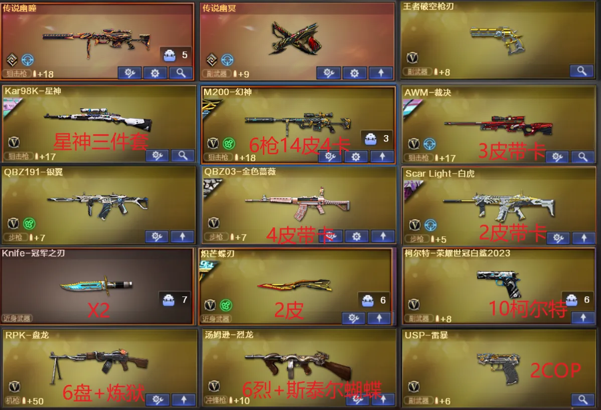 【允许排位】首发幻神EP+AG✨幻神6枪14皮3卡✨金ID财决✨幻影2皮蝶刃✨多皮星神裁决qbz白虎三件套✨满副