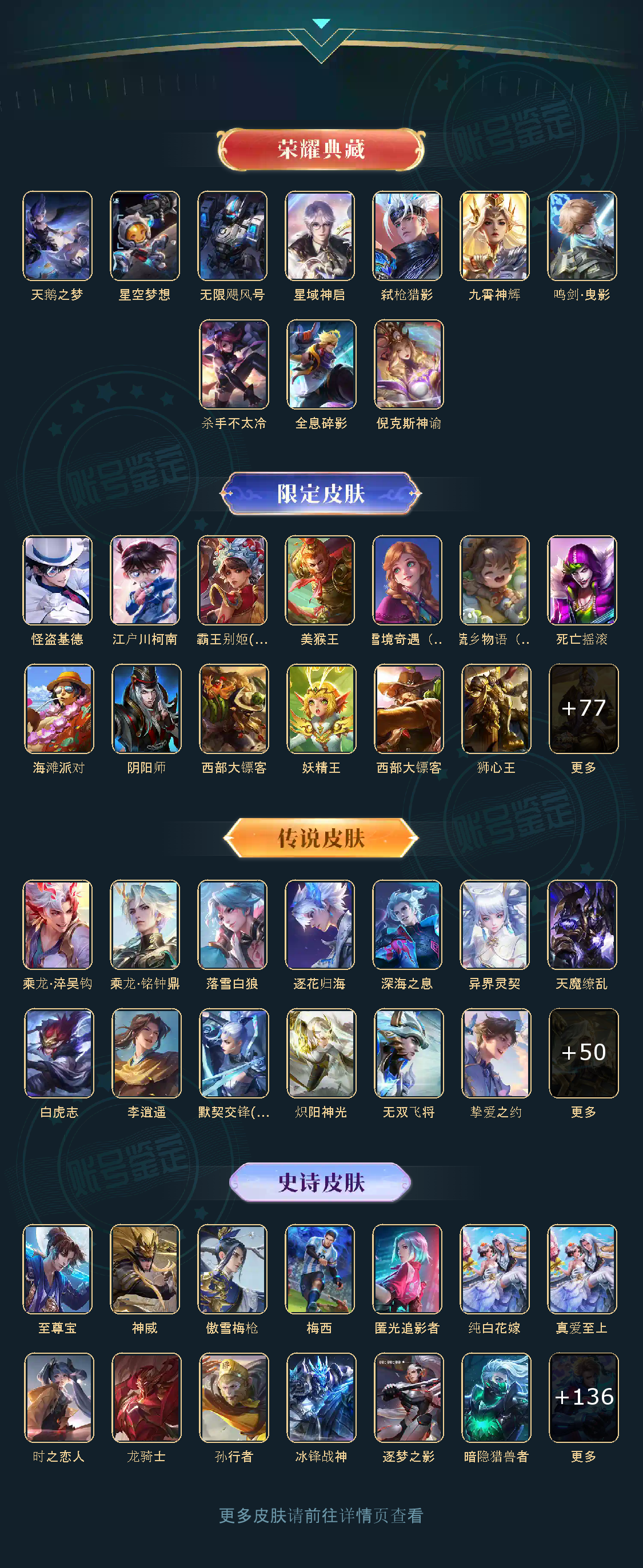 贵族等级V10,英雄数量124,典藏皮肤数10,皮肤数量480,