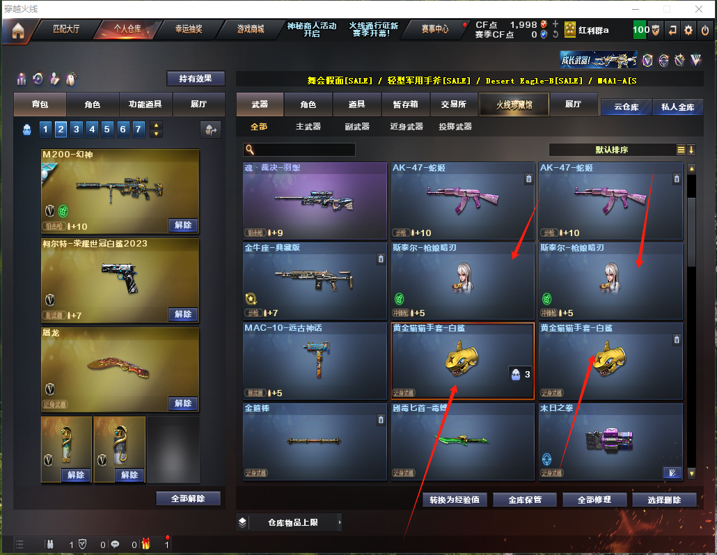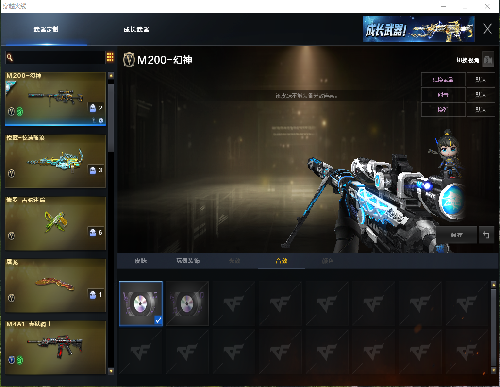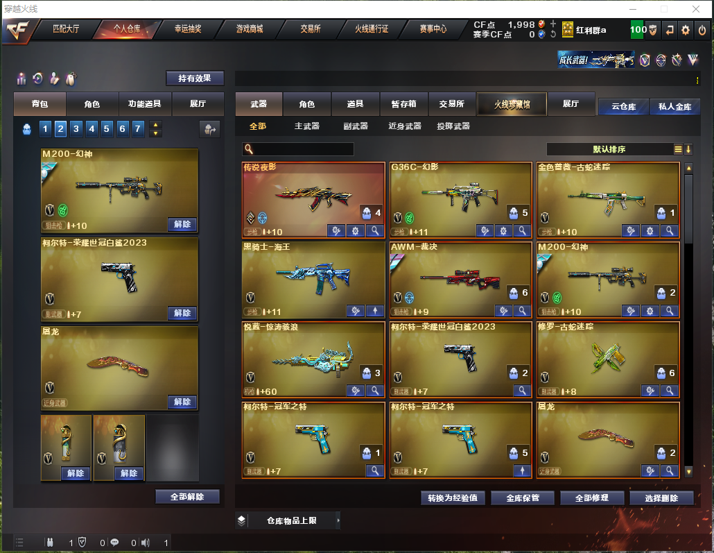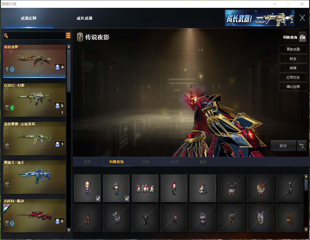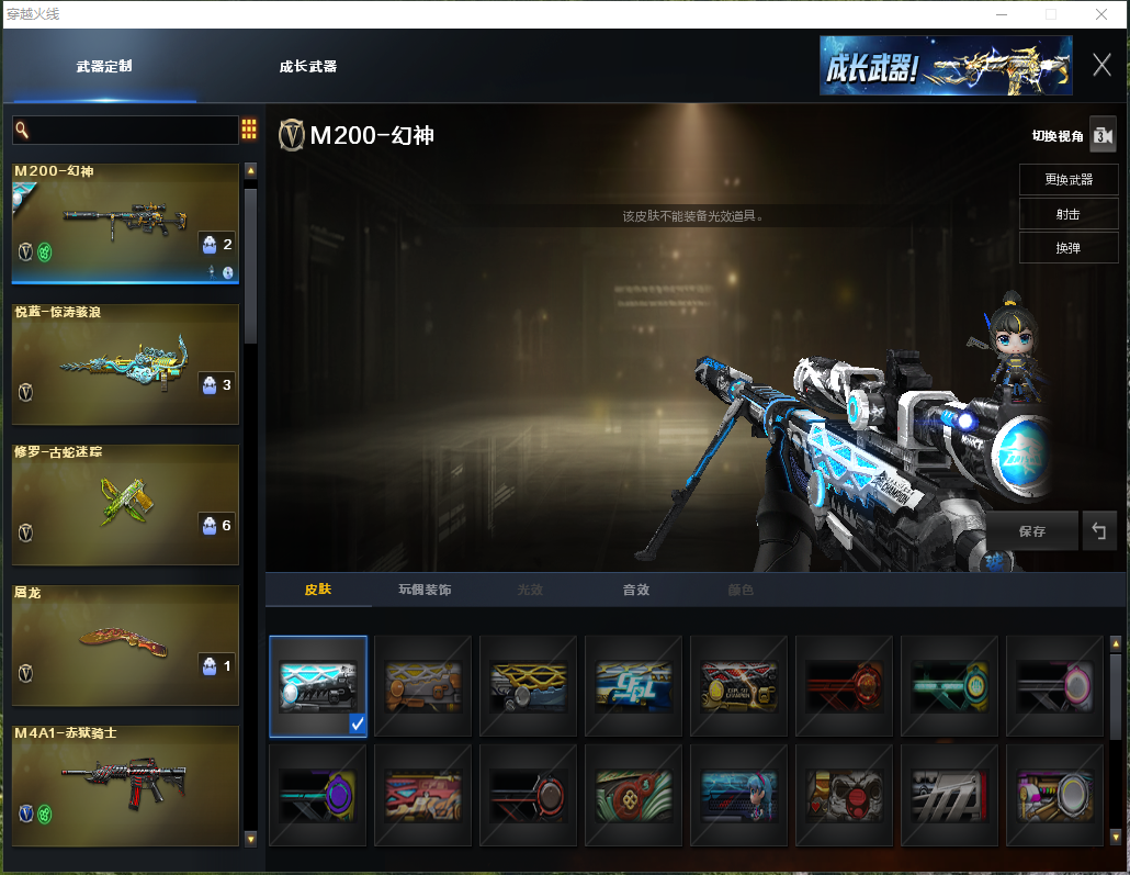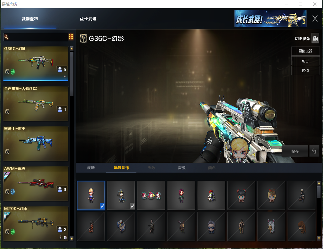 【主武器】M200-幻神/G36C-幻影/传说夜影/②斯太尔枪娘暗刃/金色蔷薇-古蛇迷踪/悦蓝-惊涛骇浪觉醒/裁决/黑骑士海王/朱雀蛇隐宗/EVO赤血龙魂/