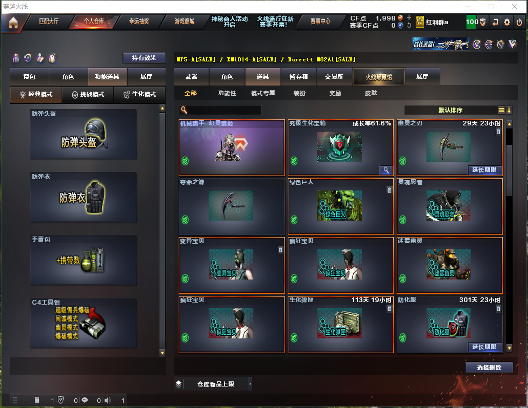 【道具】紫金大元首/全背包/VIP2/变异宝贝/疯狂宝贝/迷雾幽灵/灵魂忍者/绿巨人/手枪/冲锋枪/机枪/生化弹夹/生化爆破全装