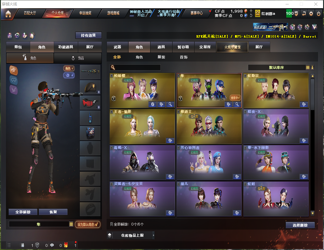 【角色】隼/枪娘樱/王者魅影+爆破四防/蛇隐宗/修道士/零水下丽影/暗夜X/蛇姬/对讲机/炫彩背包