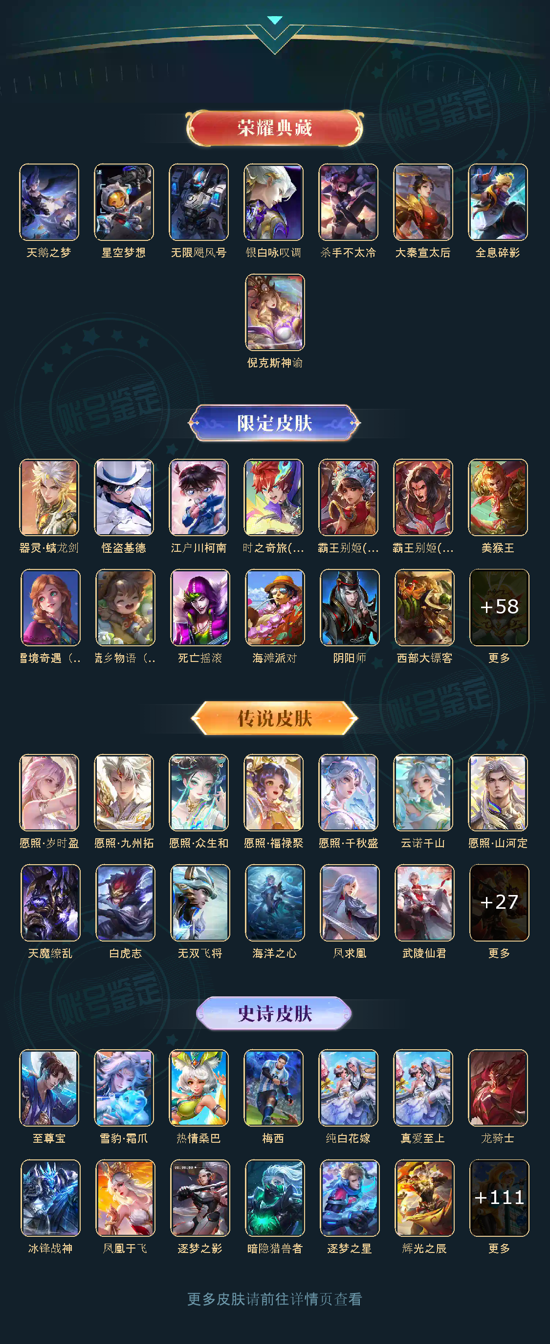 贵族等级V10,英雄数量125,典藏皮肤数7,皮肤数量417,